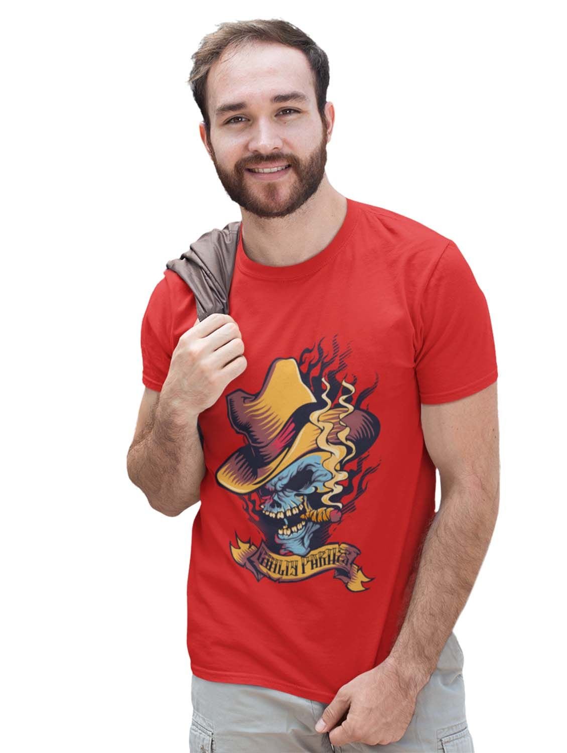 Guilty Parties Red Round Neck Cotton Half Sleeved T-Shirt with Printed Graphics