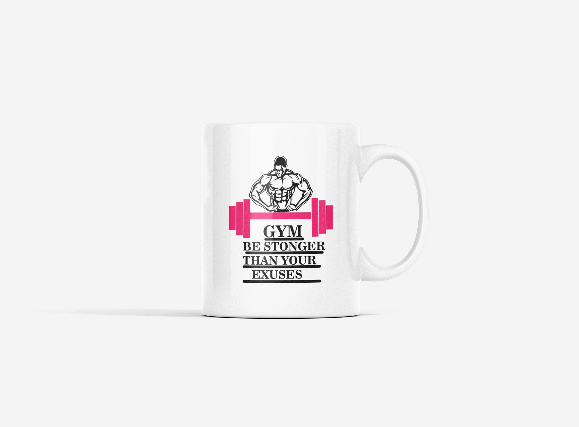 Gym, Be Stronger Than Your Excuses, (BG Pink and Black) - gym themed printed ceramic white coffee and tea mugs/ cups for gym lovers