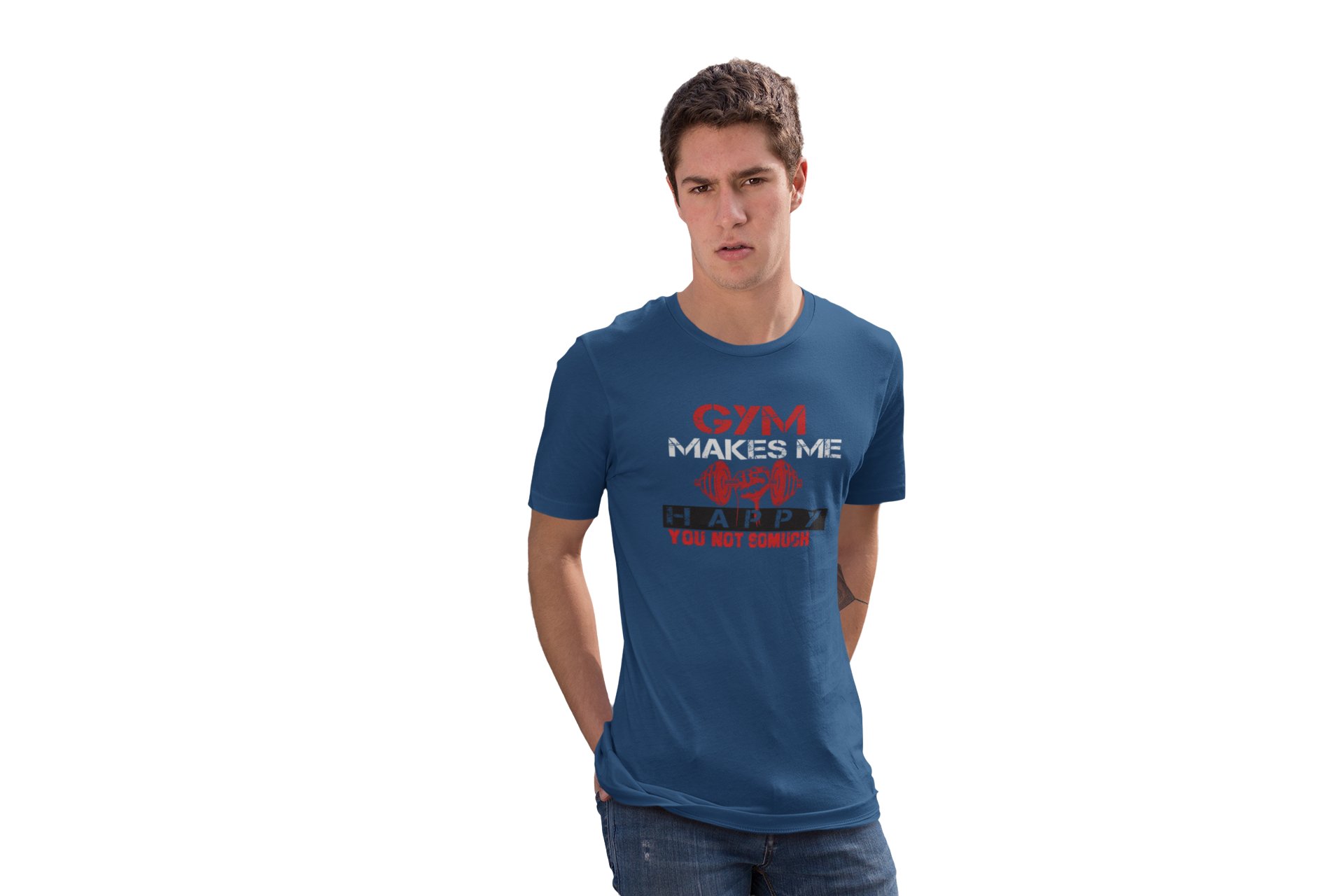 Gym Makes Me Happy, You Not So Much, Round Neck Gym Tshirt (Blue Tshirt) - Clothes for Gym Lovers - Suitable for Gym Going Person - Foremost Gifting Material for Your Friends and Close Ones