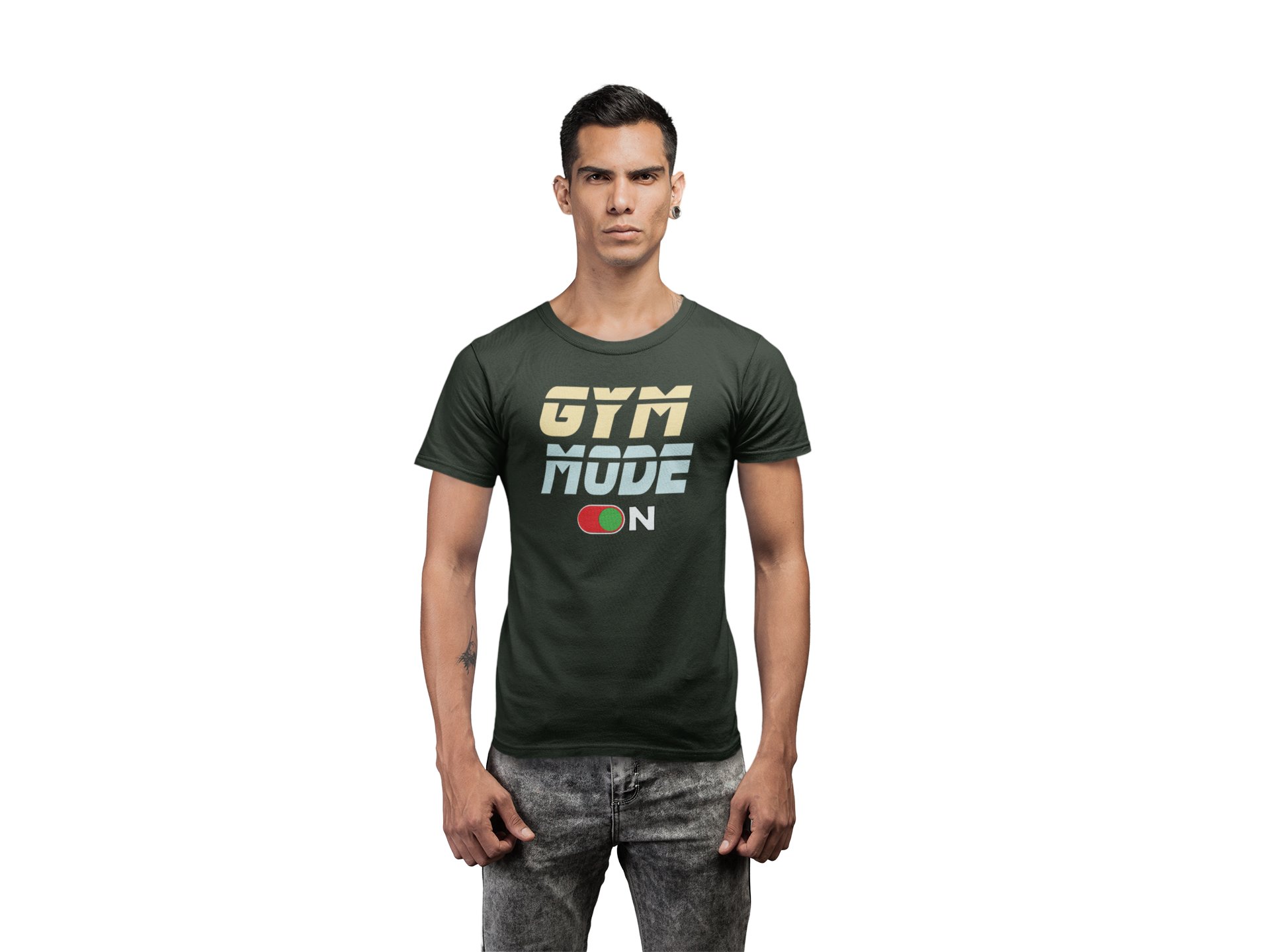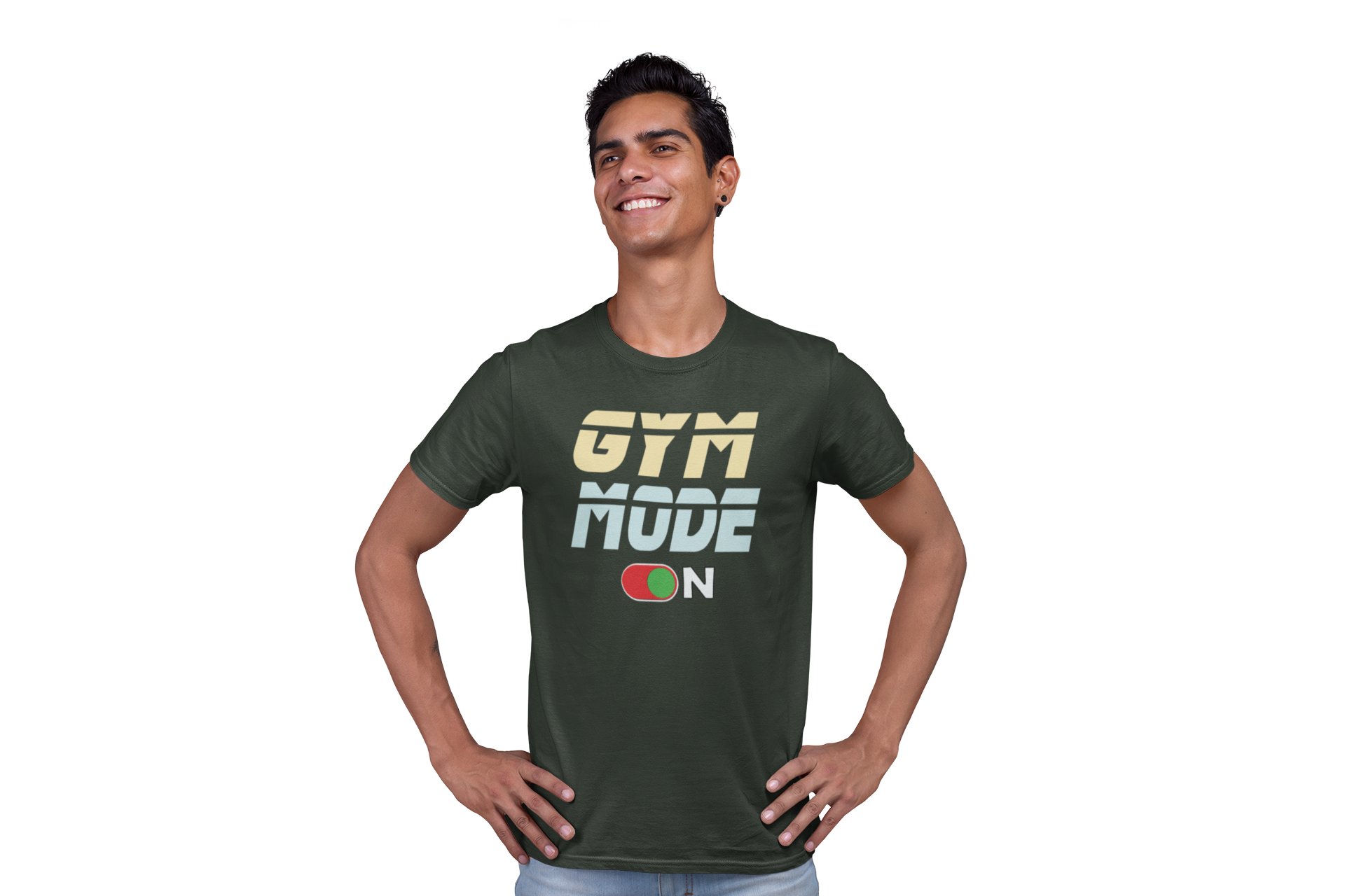 Gym Mode On, Round Neck Gym Tshirt (Green Button On) - Foremost Gifting Material for Your Friends and Close Ones