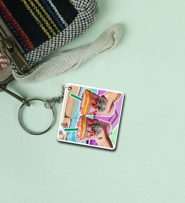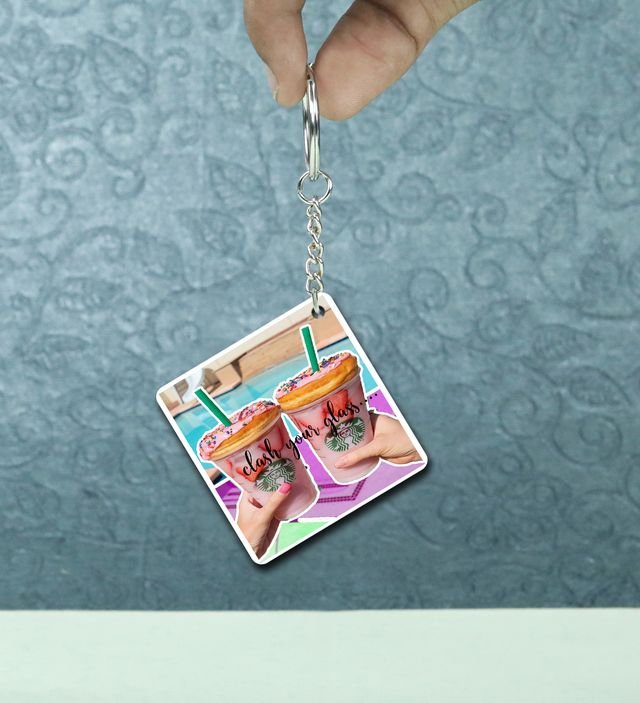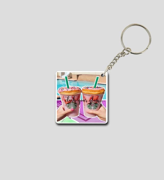 Handcrafted Colorful Beverage Art Printed Keychain Pack of 2