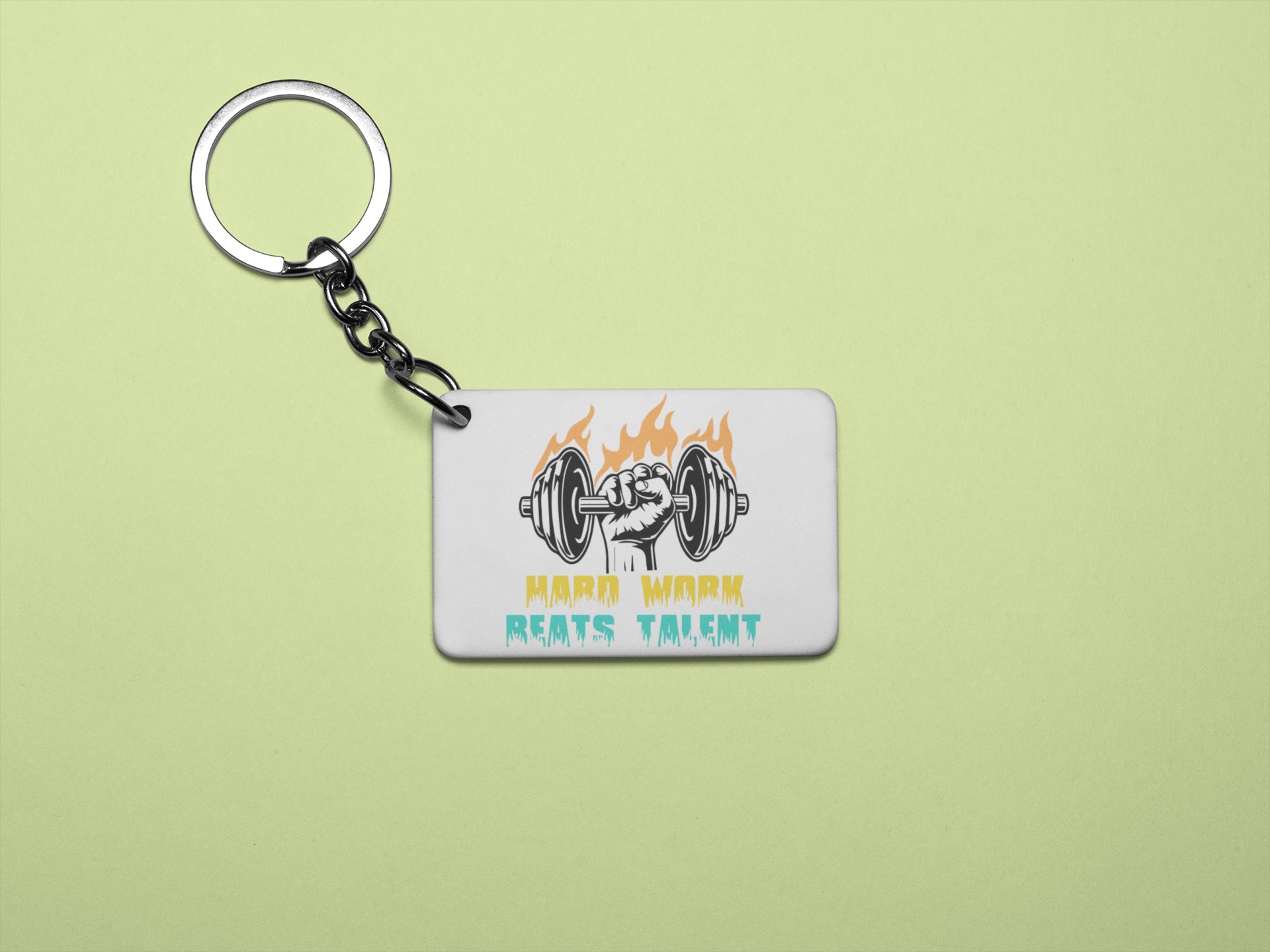 Hard Work Beats Talent - Printed Keychains for gym lovers(Pack of 2)
