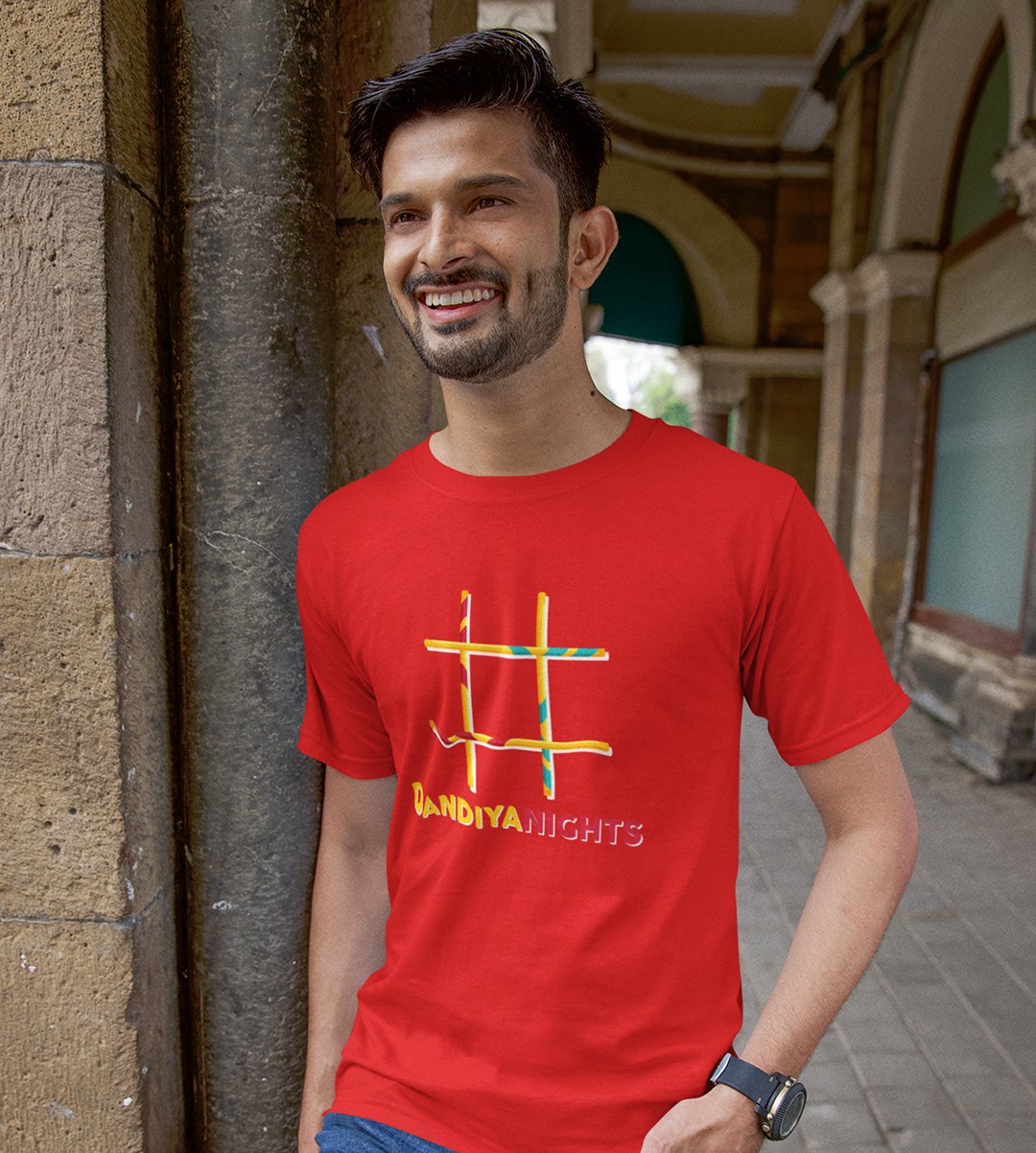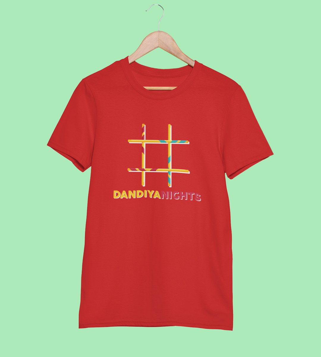 Hashtag printed unisex adults round neck cotton half-sleeve red tshirt specially for Navratri festival/ Durga puja