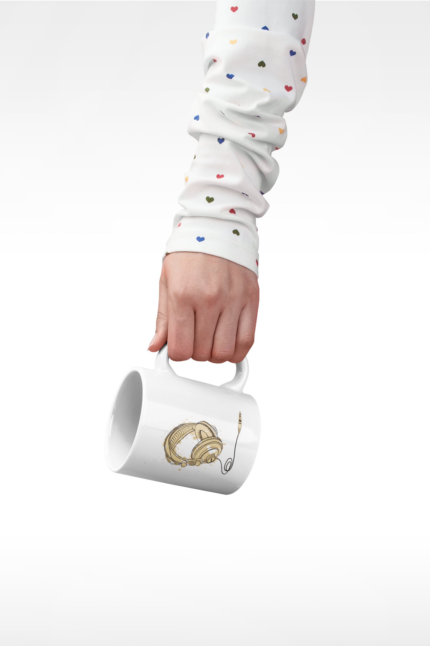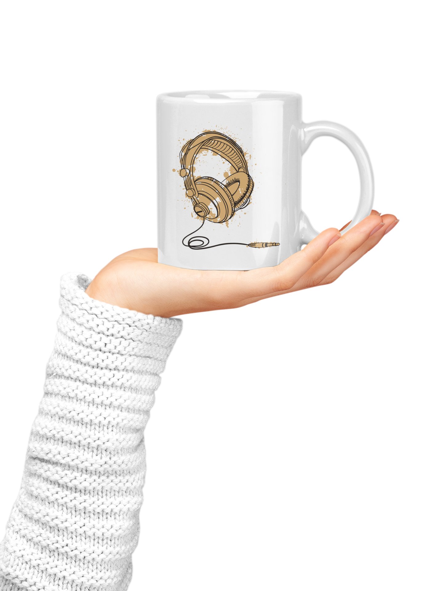Headphones - music themed printed ceramic white coffee and tea mugs/ cups for music lovers