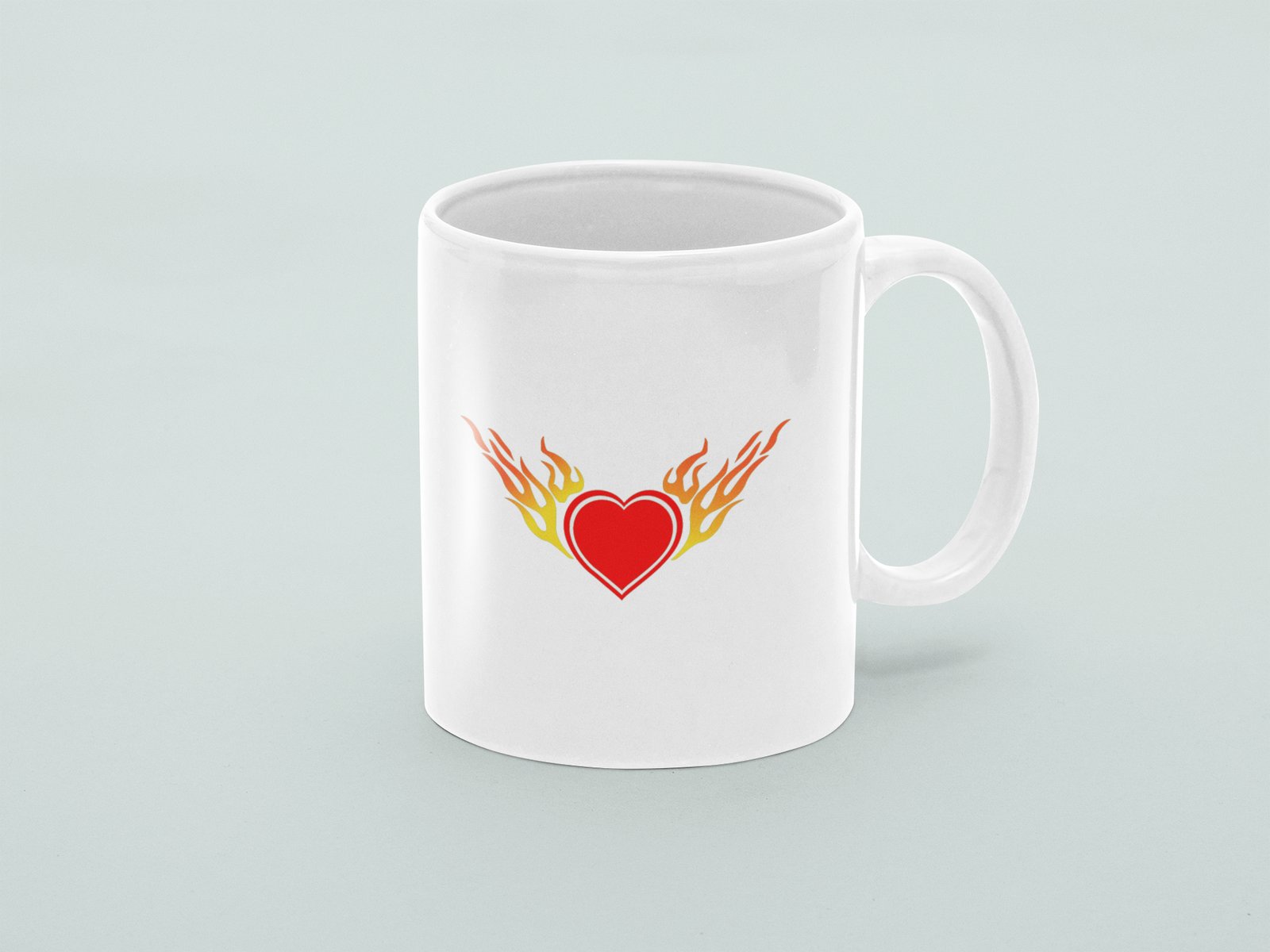 Heart with Fire - valentine themed printed ceramic white coffee and tea mugs/ cups