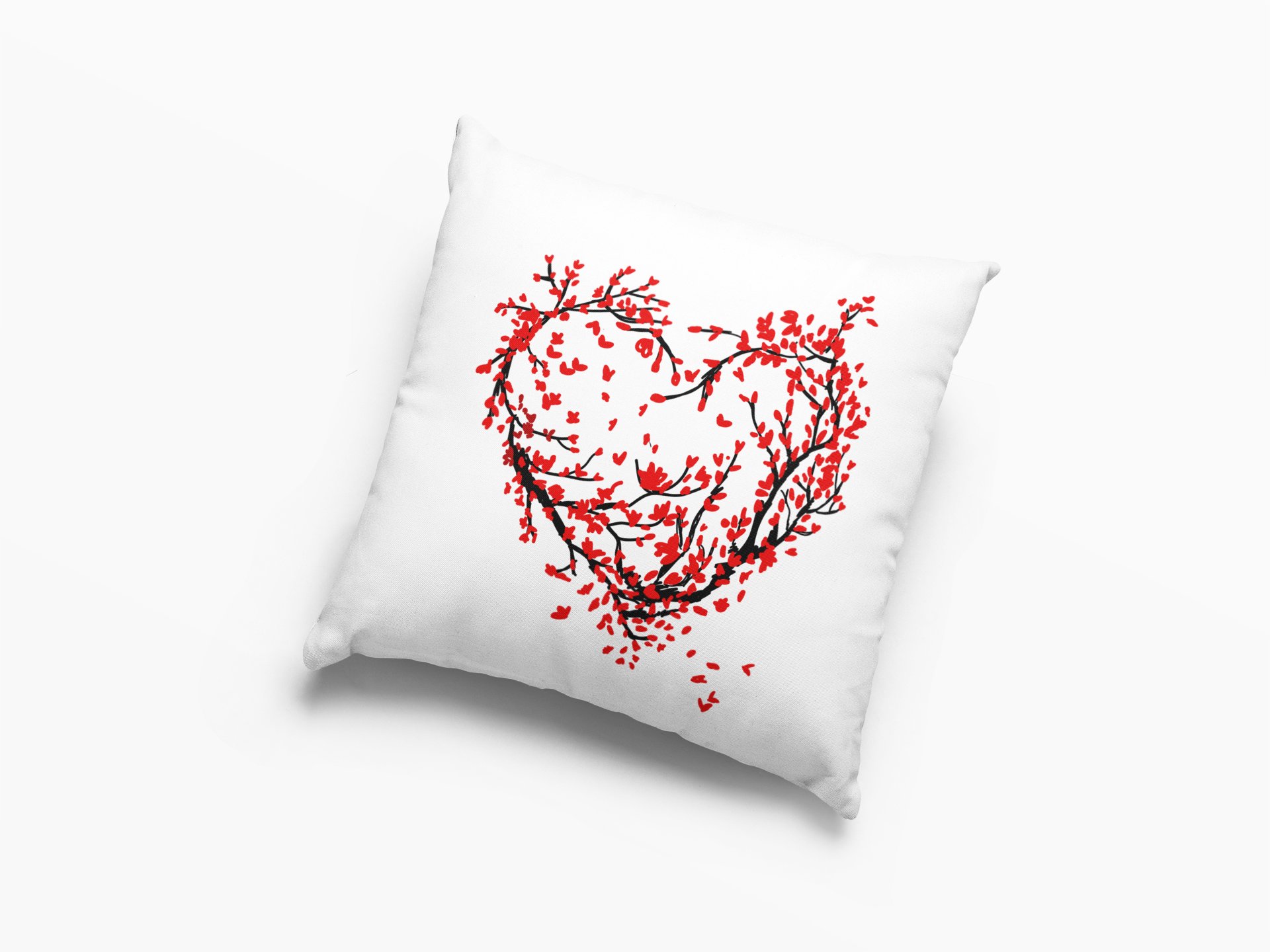 Heart With Flowers And Banches-Printed Pillow Covers For (Pack Of Two)