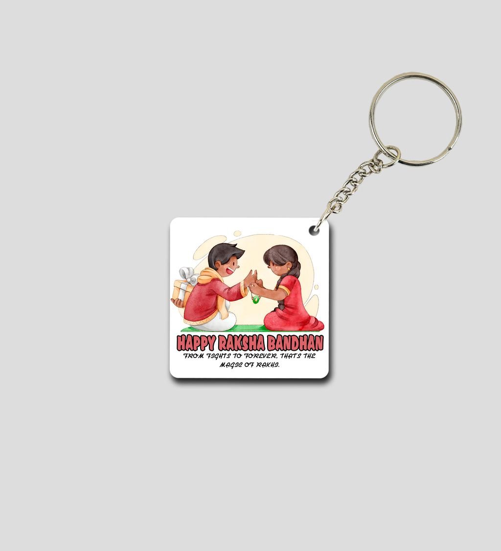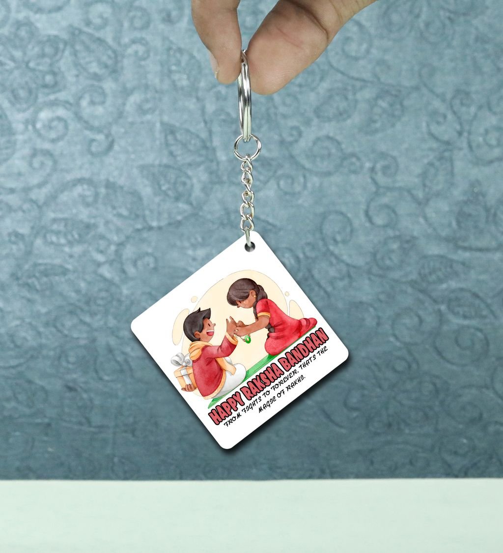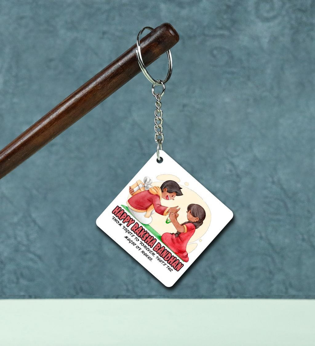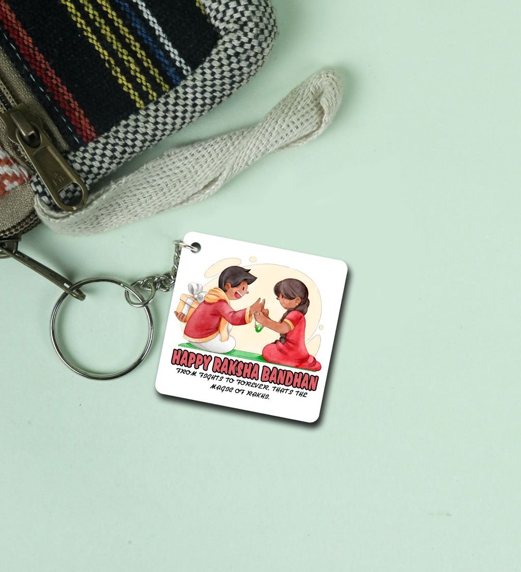 Heartfelt Rakhi Bond in Artistic Style Printed Keychain Pack of 2