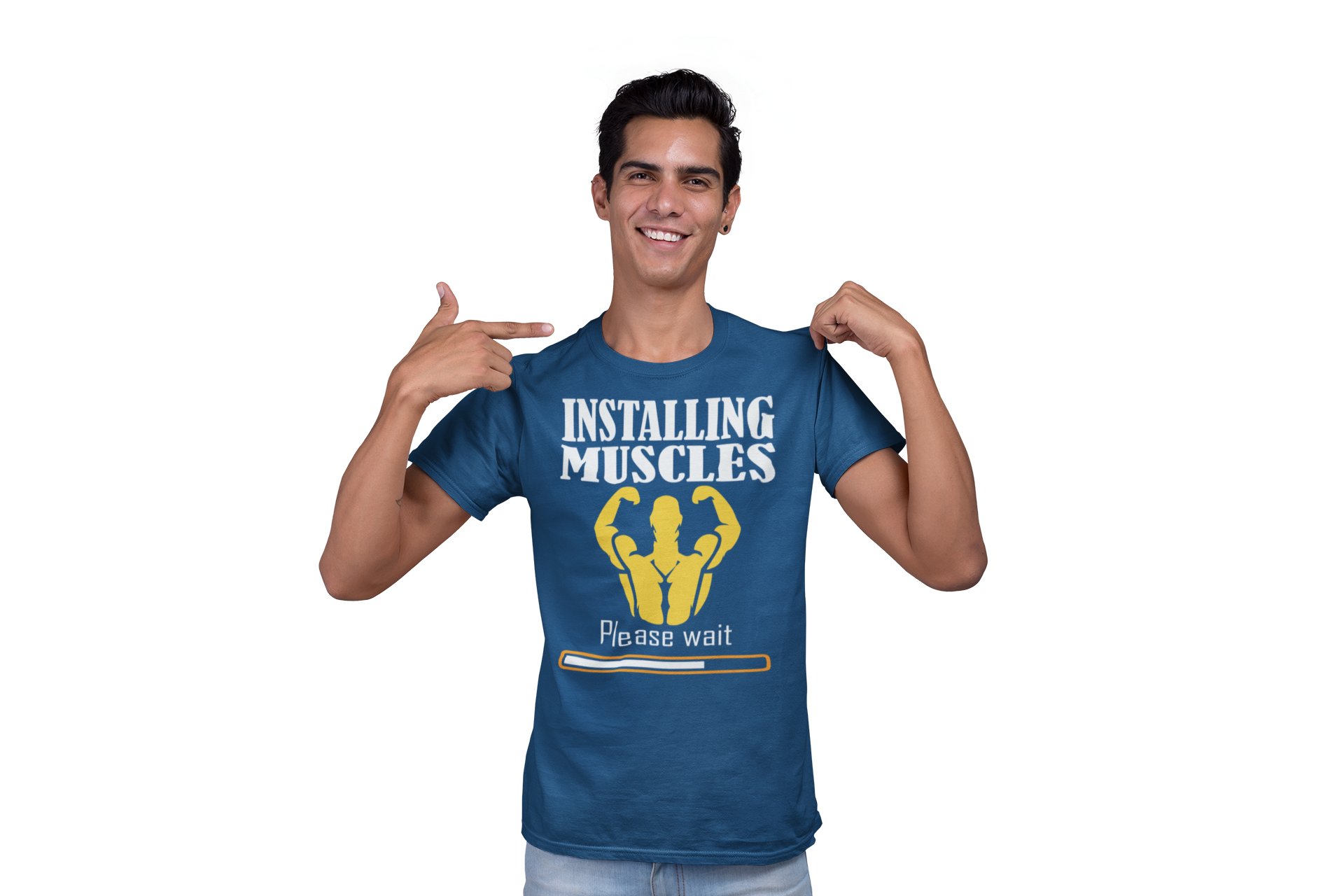 Installing Muscles loading, Round Neck Gym Tshirt (Blue Tshirt) - Clothes for Gym Lovers - Suitable for Gym Going Person - Foremost Gifting Material for Your Friends and Close Ones