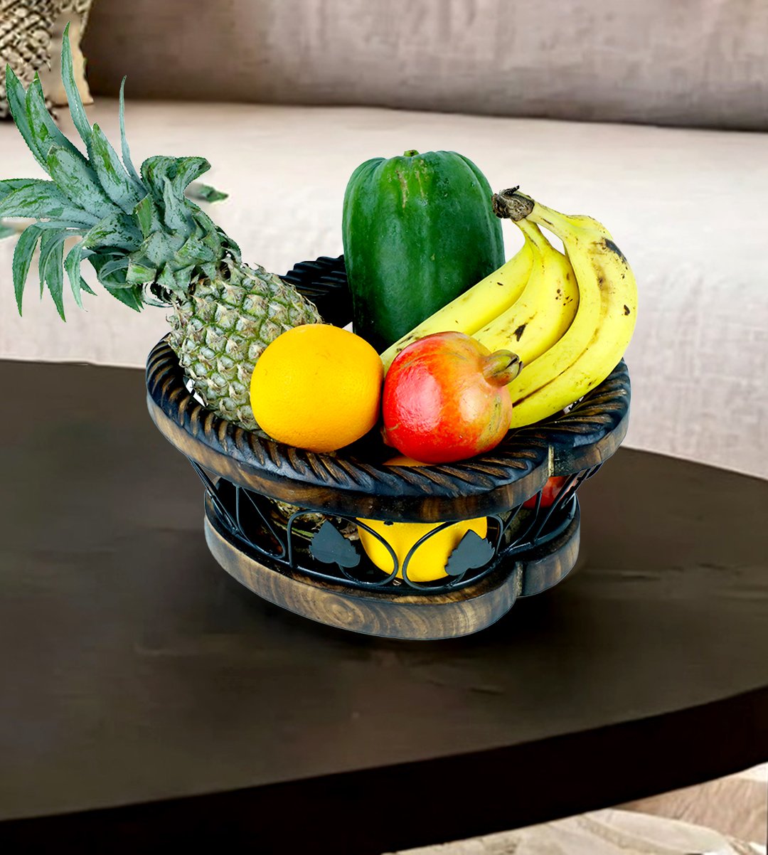 Apple Shape Fruit Basket / wooden and wrought iron fruit and vegetable basket/ fruit vessel/ or a fruit container is used to keep both fruits and vegetables in it. It intricats with every detailing of the product, carryable and its apple shaped basket looks more classy. It is used to keep in dining tables and center tables. The product is made up from wrought iron and wood. Those who love fruits will ofcourse buy it. The designs enhancing the product into a classified one. It has best finishing. You must have your favourite one. We have brought you many fruit and vegetable containers to choose from. You can gift it to your family, relatives, friends, siblings. Also it can be gifted in birthdays, marriages, anniversaries, house warming parties ,chirstmas parties, kitty parties etc. Grab it as soon as possible.
