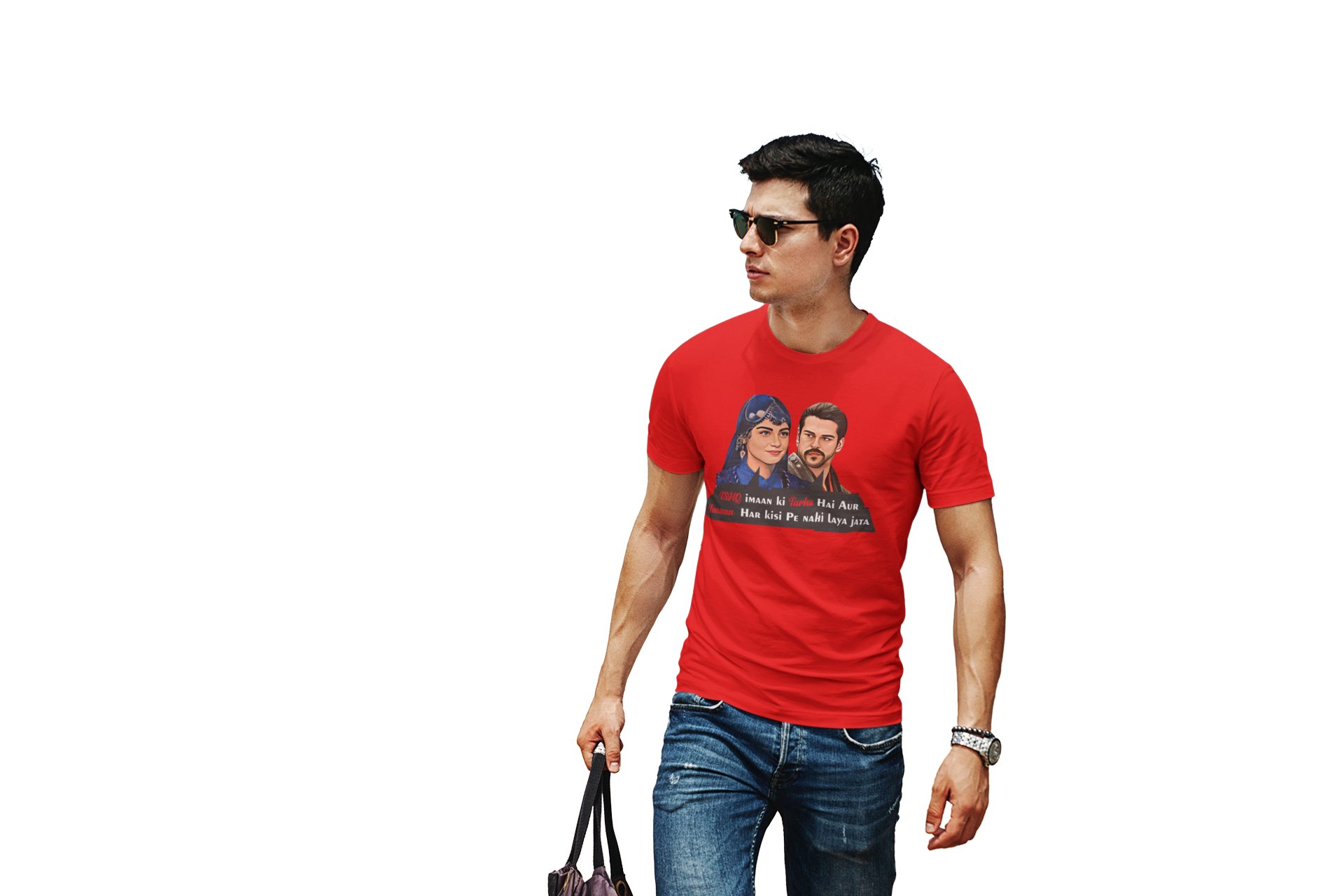 Ishq Imaan ki tarha hai - Red - The Ertugrul Ghazi - 100% cotton t-shirt for Men with soft feel and a stylish cut