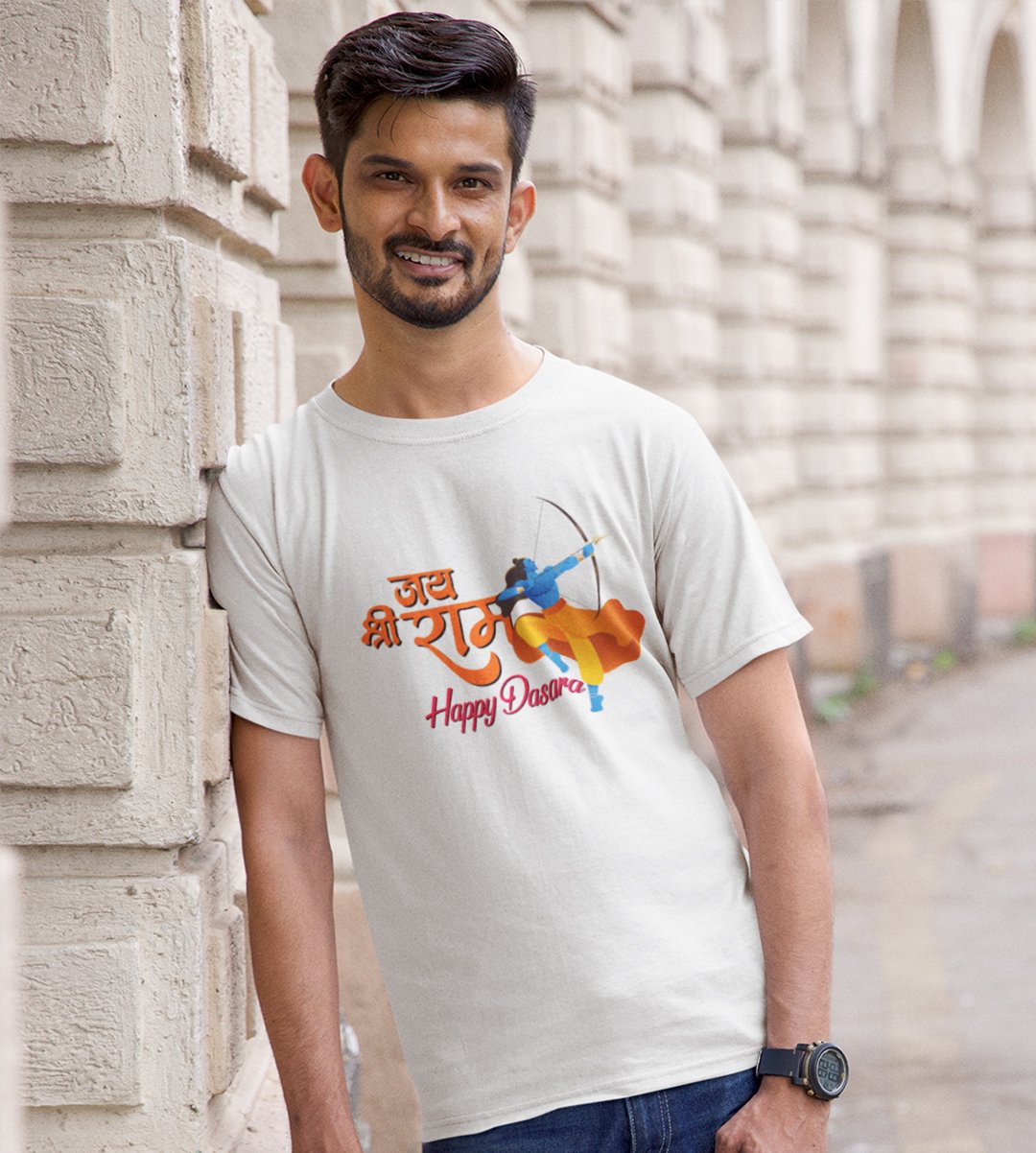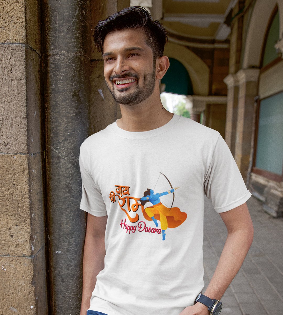 Jai shree ram printed unisex adults round neck cotton half-sleeve white tshirt specially for Navratri festival/ Durga puja