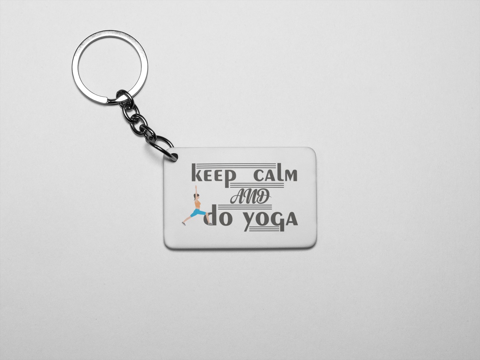 Keep Calm And Do Yoga Text - Printed Acrylic Keychains(Pack Of 2)