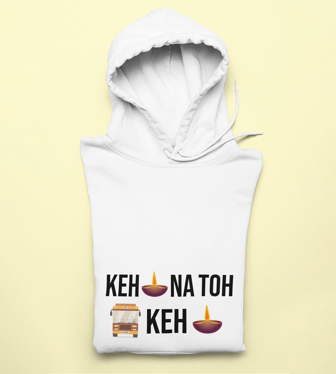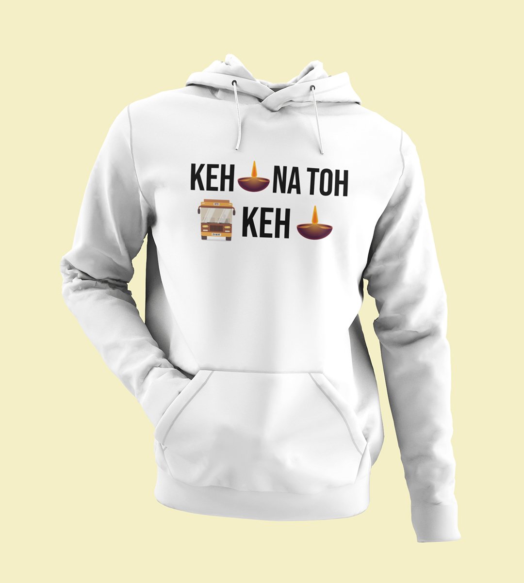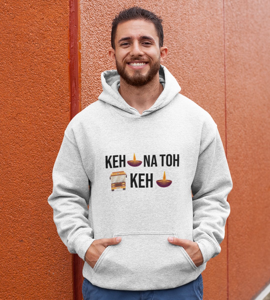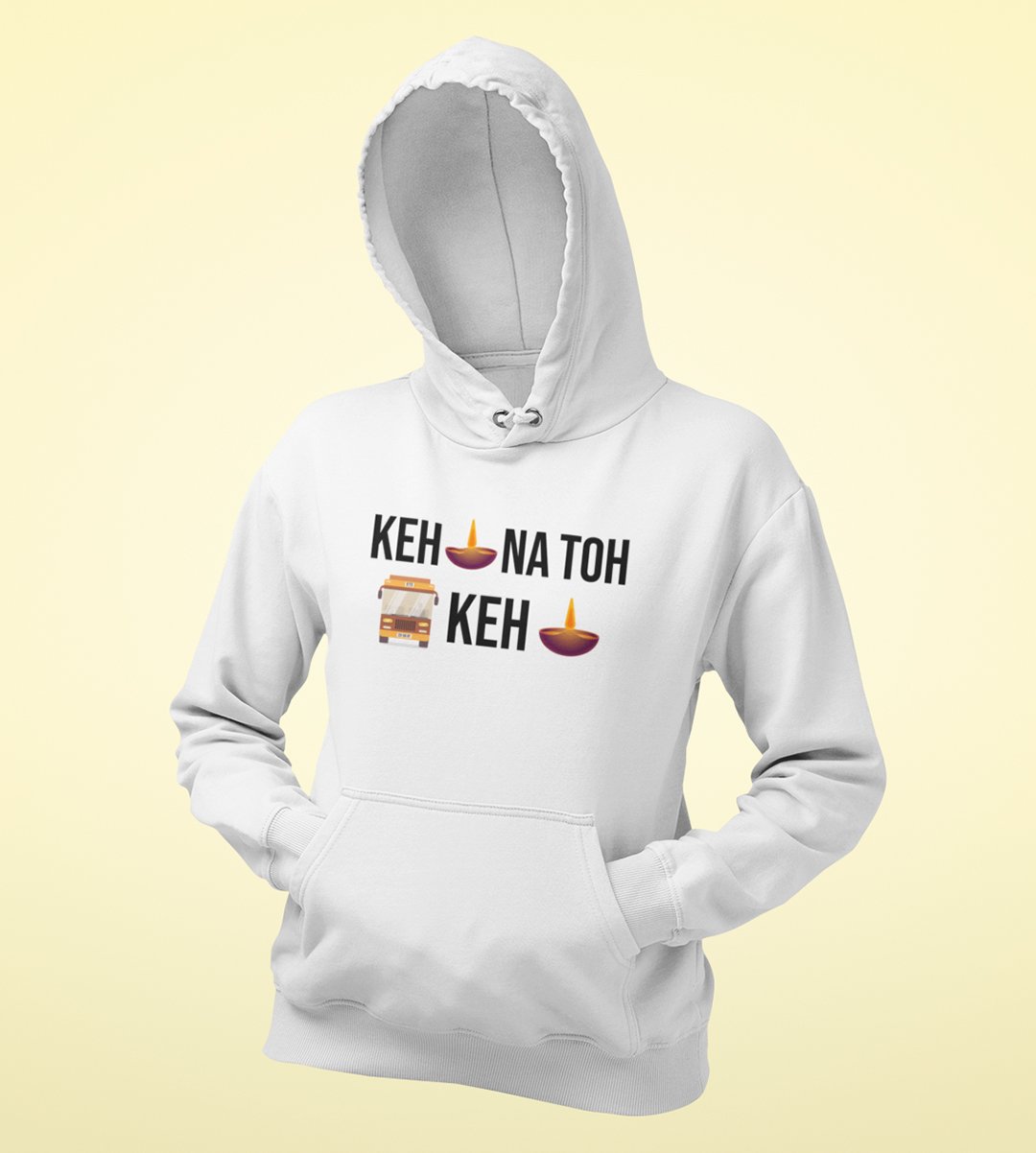 Relive the iconic moment from "Kabhi Khushi Kabhie Gham" with our KKKG Inspired Funny White Hoodie . The playful dialogue "KEH ?? NA THO ??KEH ??" is sure to bring a smile to your face every time you take a sip. It's a delightful addition to your moments, adding a touch of Bollywood humor to your daily routine.