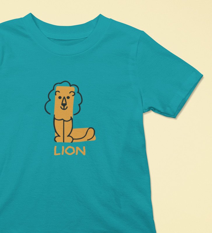 Lazy Lion, Boys Printed Crew Neck Tshirt (Teal)