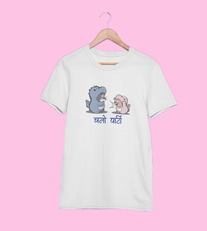 Let's Party White Graphic Printed T-shirt For Mens Boys