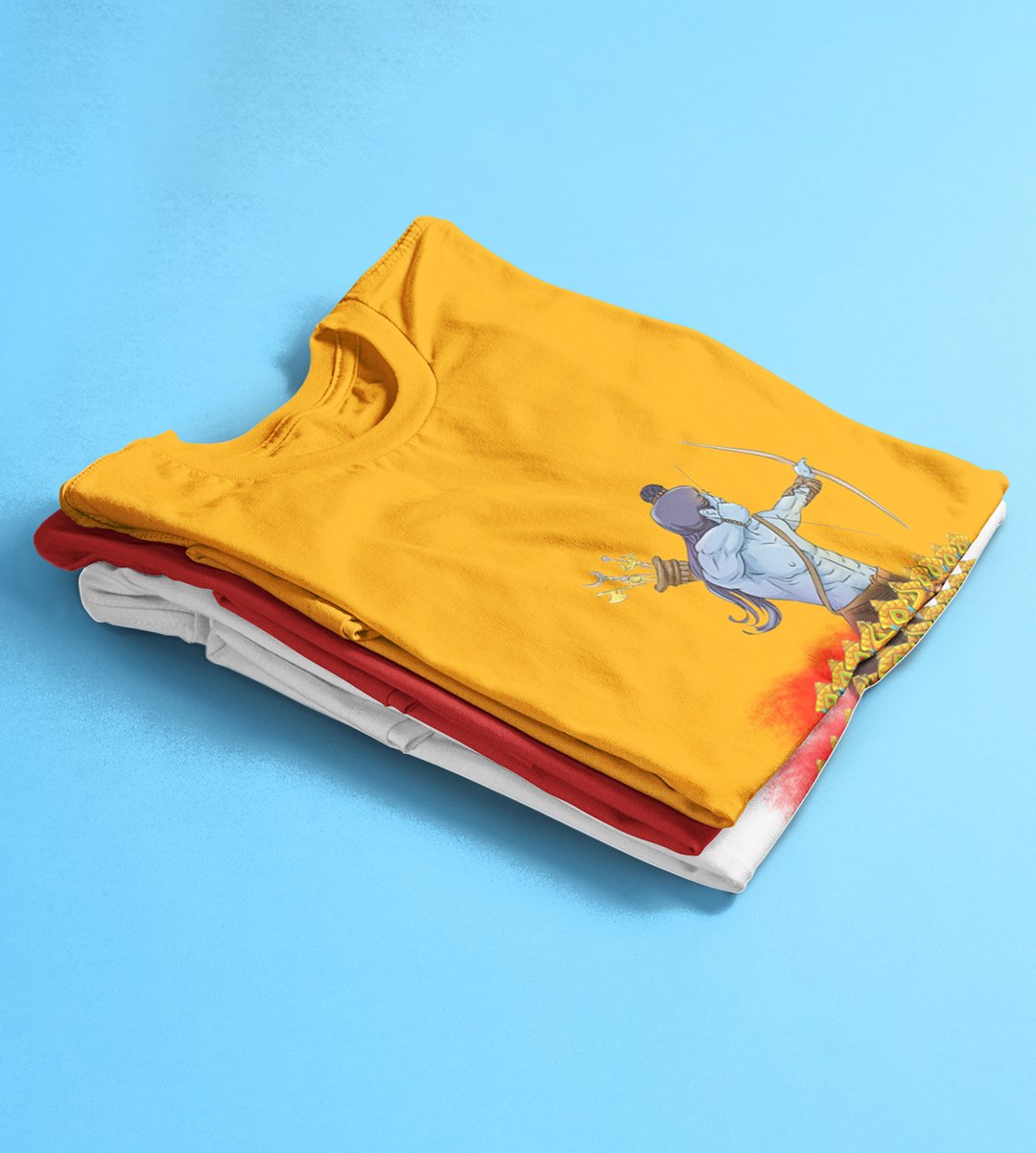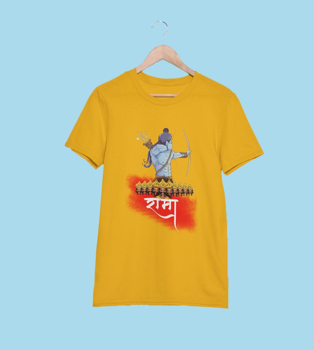 Lord Ram & Ravan face printed unisex adults round neck cotton half-sleeve yellow tshirt specially for Navratri festival/ Durga puja