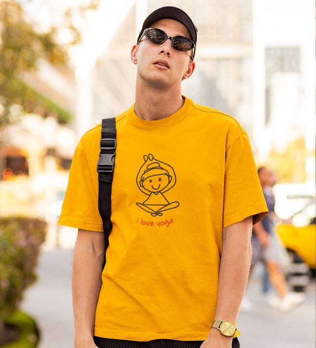 Love For Yoga Yellow Round Neck Cotton Half Sleeved Men T-Shirt with Printed Graphics