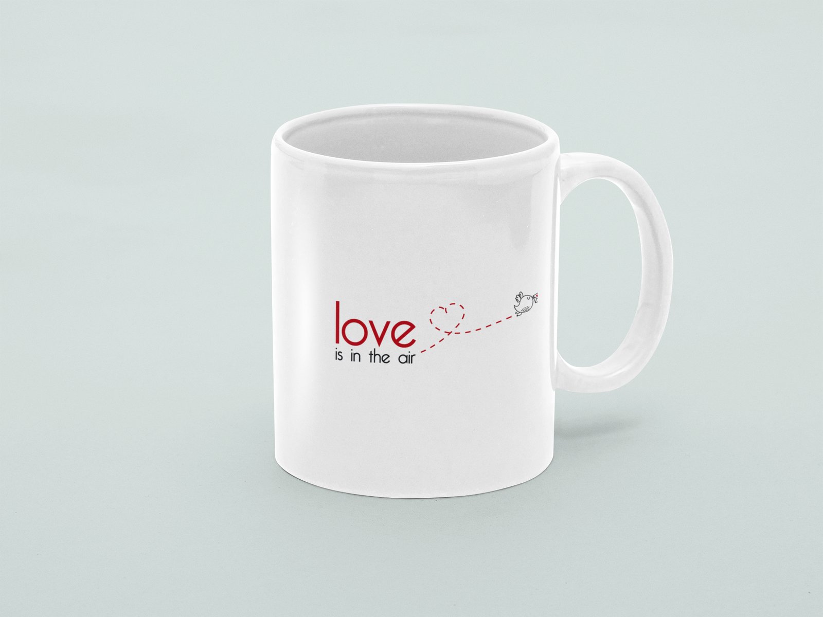 Love is in the air, a bird with letter - valentine themed printed ceramic white coffee and tea mugs/ cups