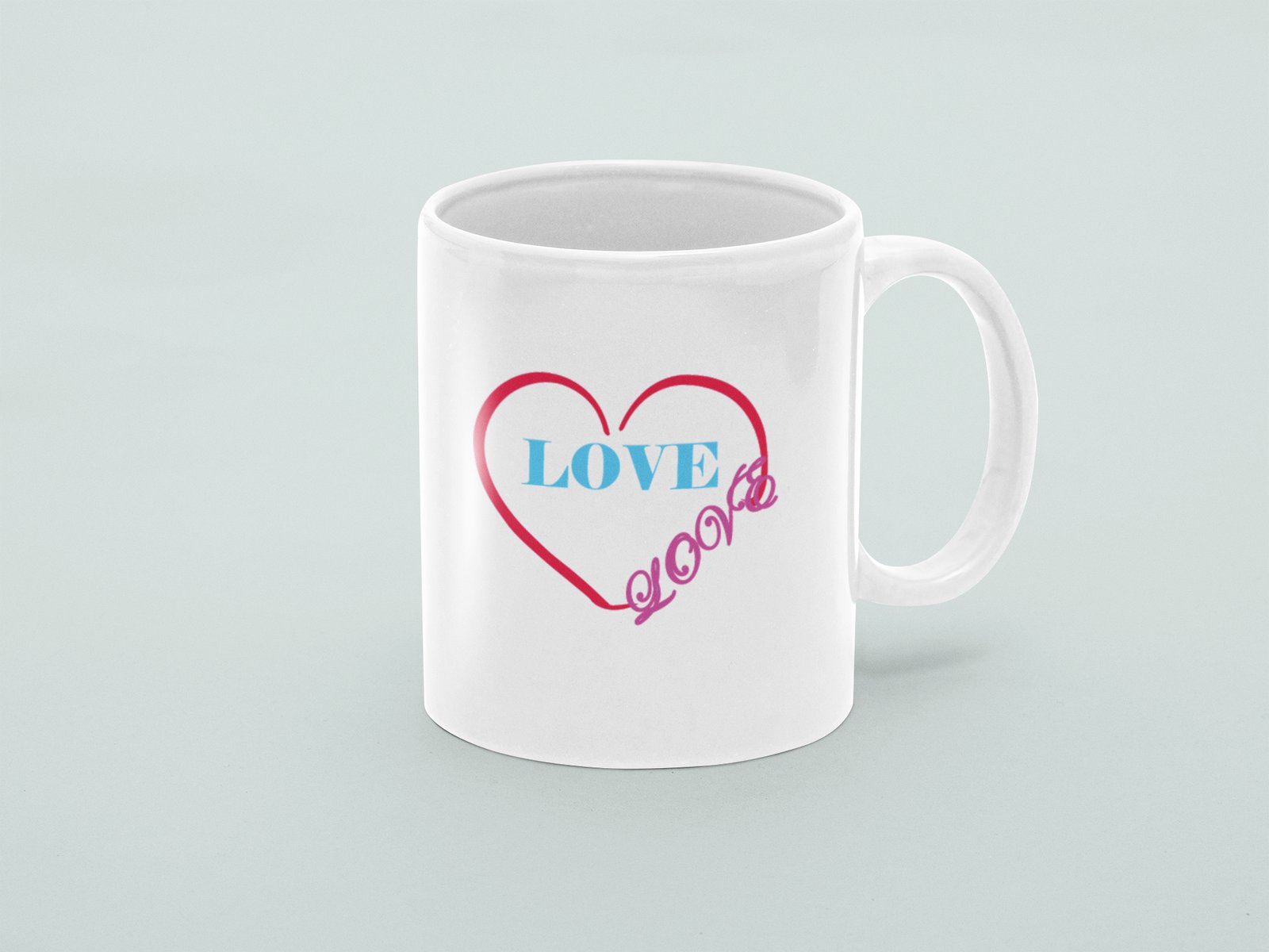 Love(Text in Sky Blue ) - valentine themed printed ceramic white coffee and tea mugs/ cups