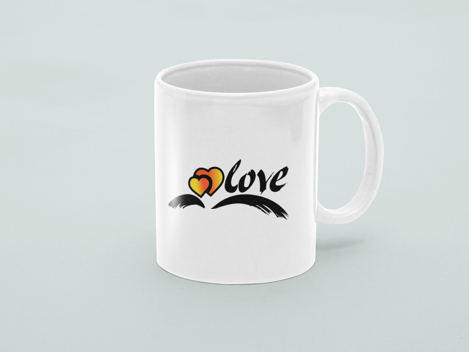Love Text With Double Hearts - valentine themed printed ceramic white coffee and tea mugs/ cups