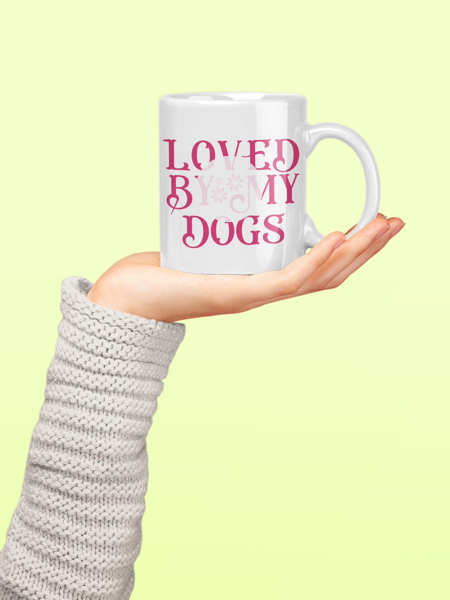 Loved by my dogs- pets themed printed ceramic white coffee and tea mugs/ cups for pets lover people