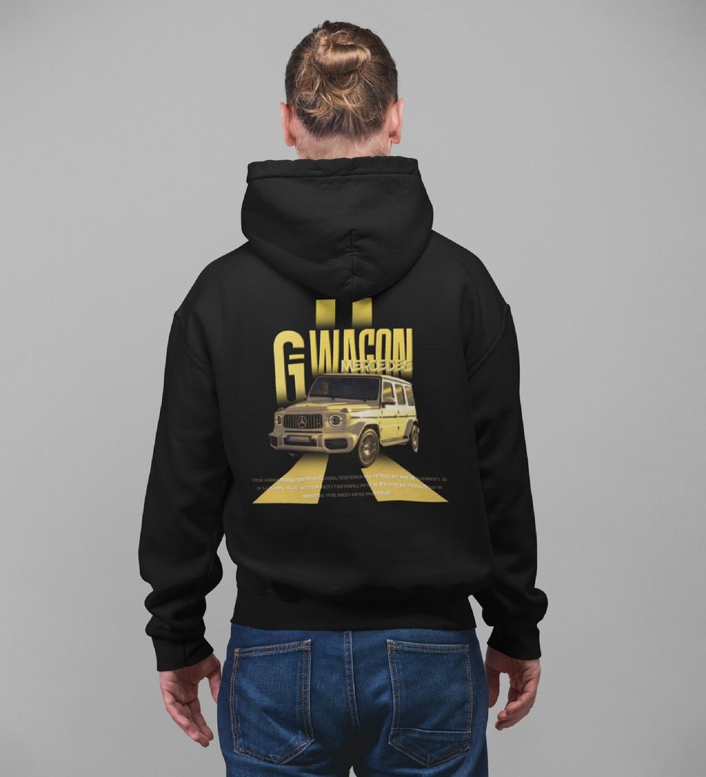 Luxury Meets Strength Iconic AllTerrain SUV Printed Black Hoodie for Men
