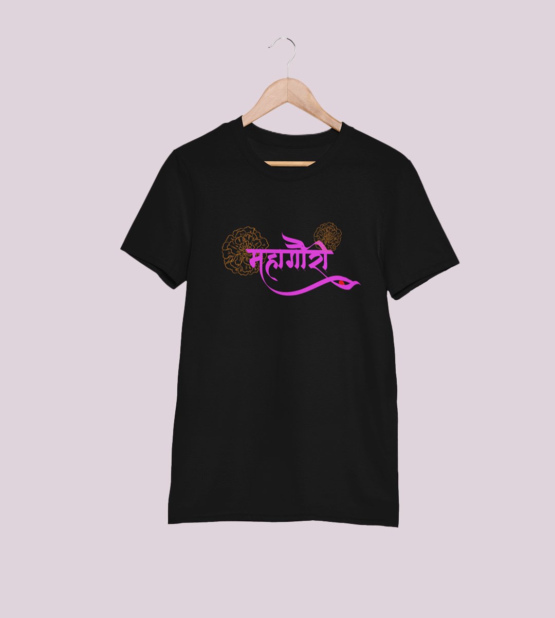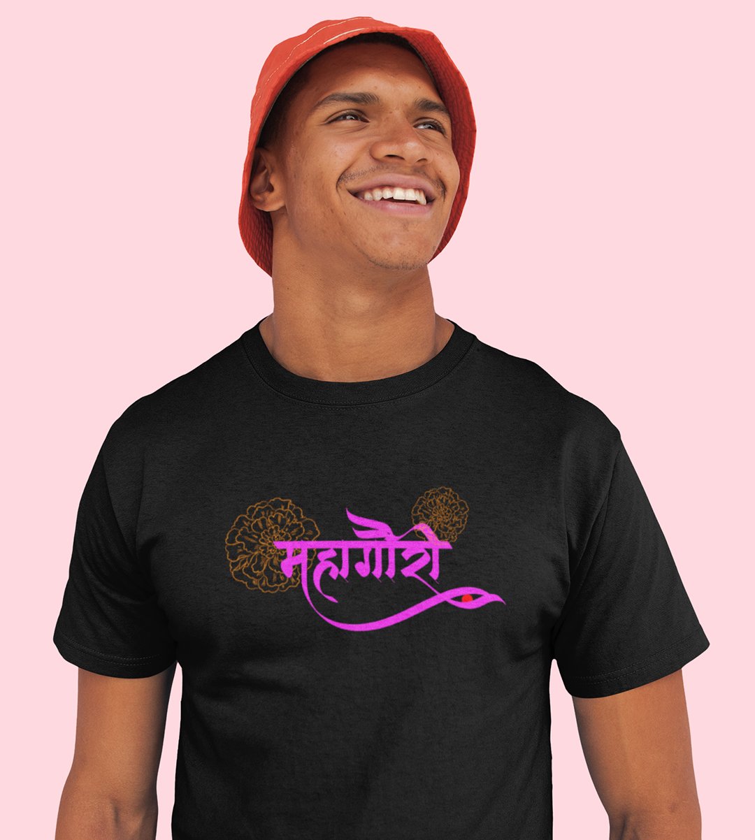 Mahagauri printed unisex adults round neck cotton half-sleeve black tshirt specially for Navratri festival/ Durga puja