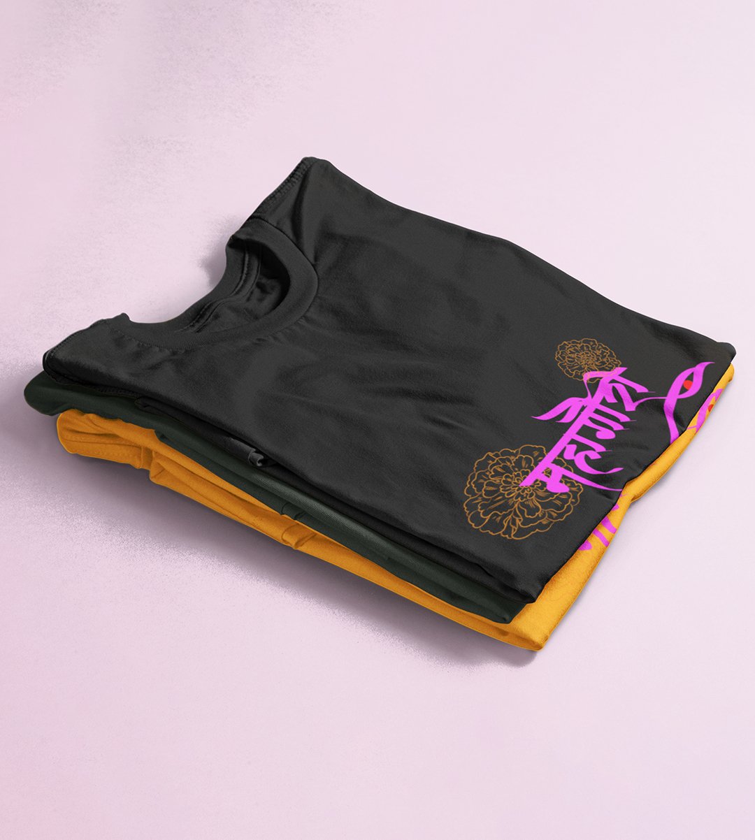 Navratri is a very auspicious festival for hindus. It takes place at the beginning of October and sometimes September. Enjoy the 9 days of festivities with full zeal and make yourself submerged in the love of Maa Durga. Navratri is also known as Durga Puja. And with this Tees, you can shine like a star during this festive season with our navratri themed cotton half sleeved Tshirts. You can pair our t-shirts with trousers and denim of your choice and make it a weekday smart casual or weekend wear. This is durable. This tshirt is smooth and soft which makes you comfortable to wear during all seasons. The printing in it is durable and odourless. It has five sizes, S,M,L,XL,XXL. The Tshirt colour is intact even after repeated washes. It can be kept in your wardrobe and hangers. Please avoid washing mashine to clean this Tee, it may affect the print. Hand wash only. We have brought you many navratri related designs printed on our different colour Tshirts to choose from. Grab it now.