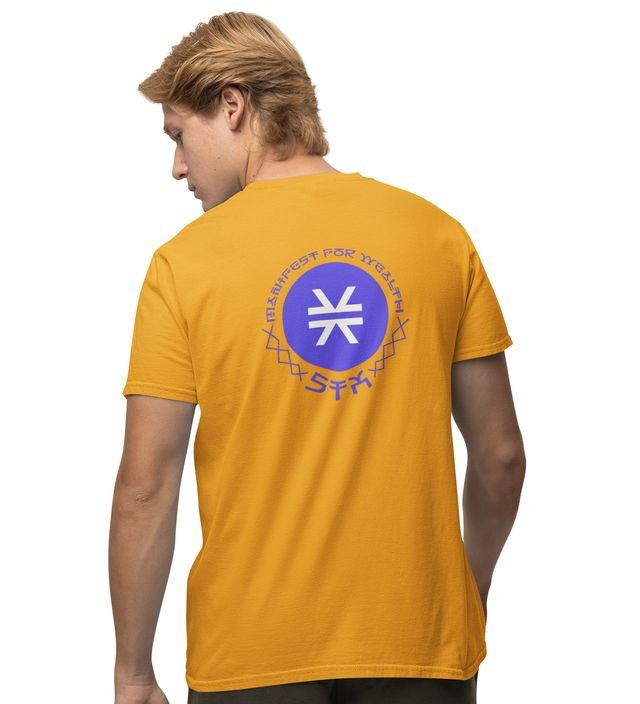 Manifest For Wealth Wings Yellow Round Neck Cotton Half Sleeved Men's T Shirt with Printed Graphics
