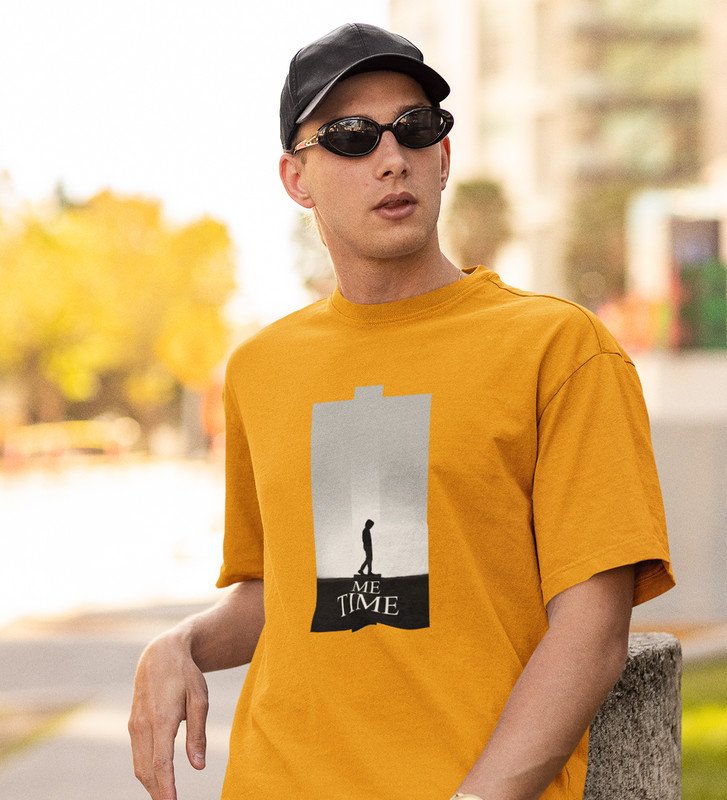Me Myself And I, City Slicker: Yellow Men's Oversized Tee with Trendy Front Print Detail