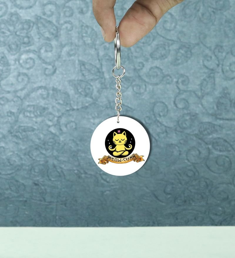 Meditating Kitty Peace Theme Printed Round Keychain Pack of 2