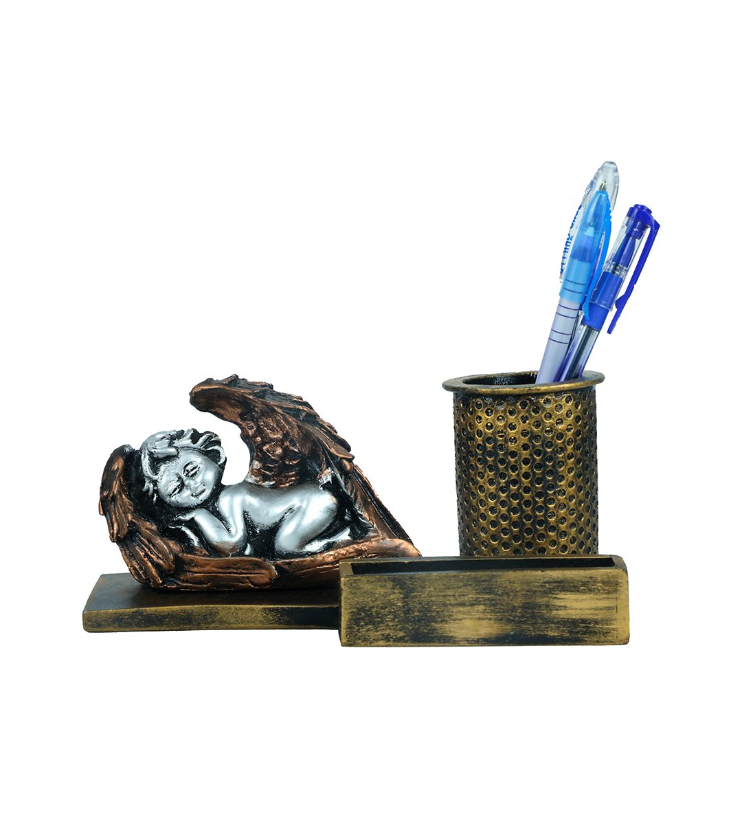 It is a metal functional sleeping cupid pen container/ pencil holder mostly kept in offices, homes, principal cabins, study tables etc. It is little bit heavy to lift. Everyone has their favourite one to choose from. We have brought you many decorative pen containers of different designs and patterns. Grab it now. Add an element of beauty to your home decor. It can also be an ideal addition of your study room. It could be a memorable gift for birthdays, or to whose who are studing, it can be a memorable return gift. What can be a better gift item for your dear ones? Gift it to yourself, your family or your loved ones. It is perfect to keep your pens, pencils, scales etc.