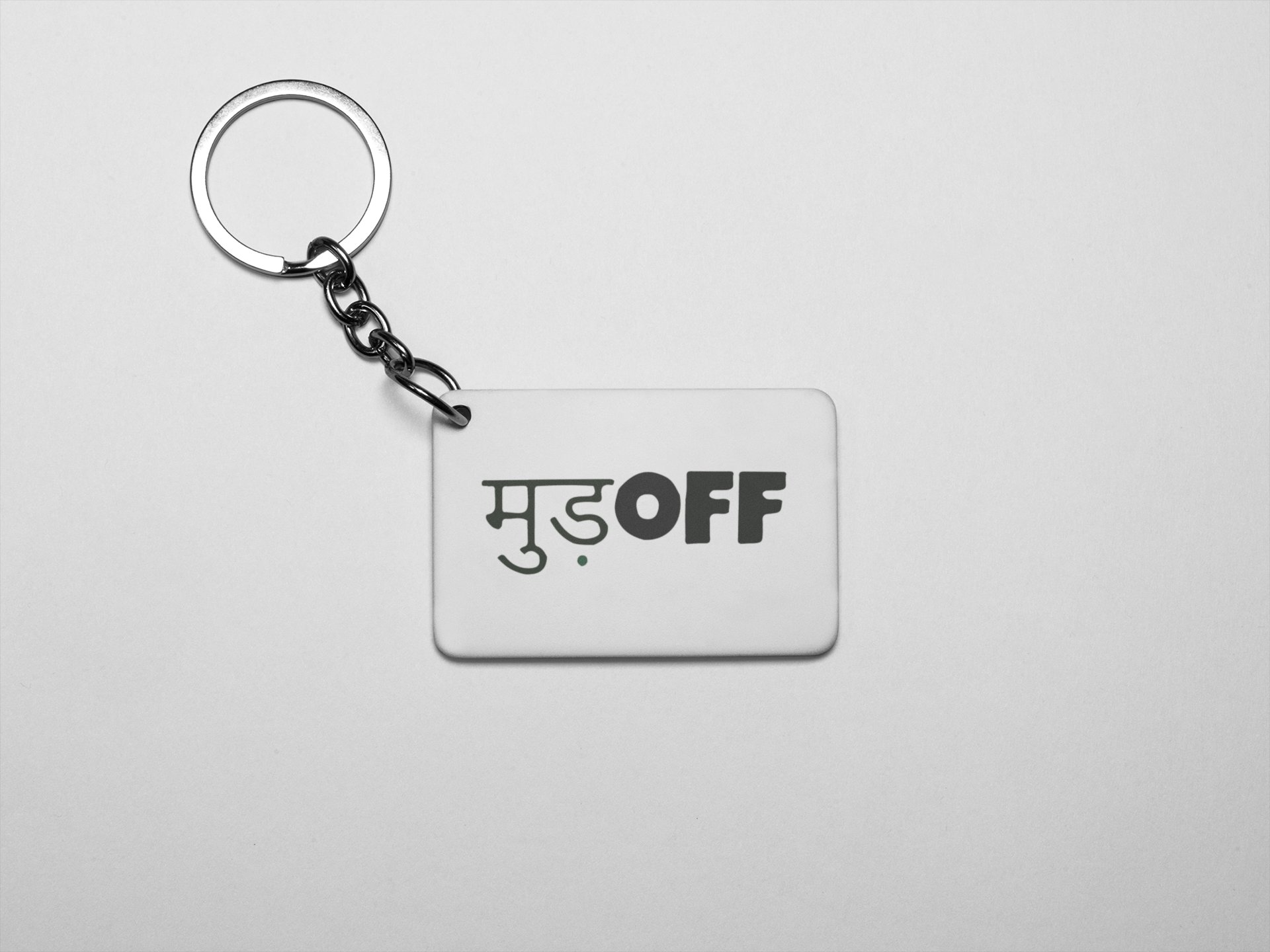 Mood Off- acryllic printed white keychains/ keyrings for bollywood lover people(Pack Of 2)