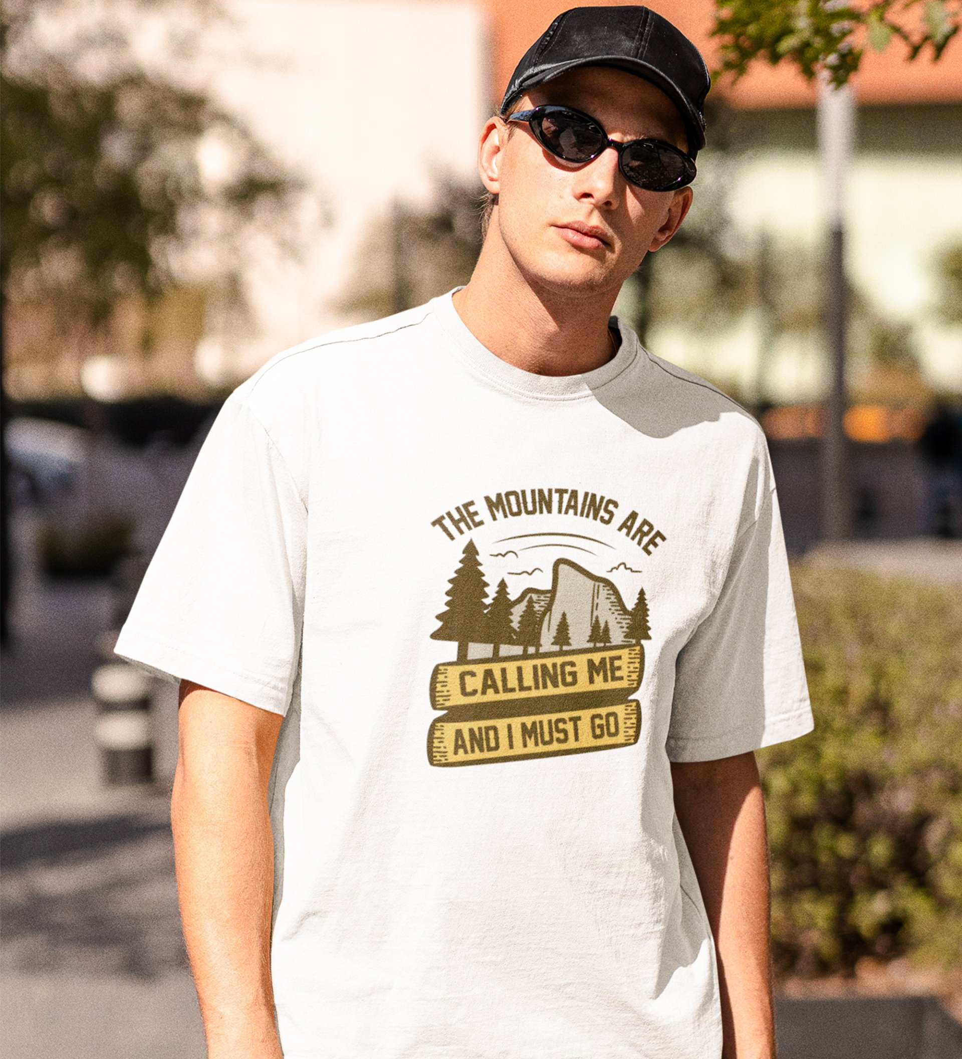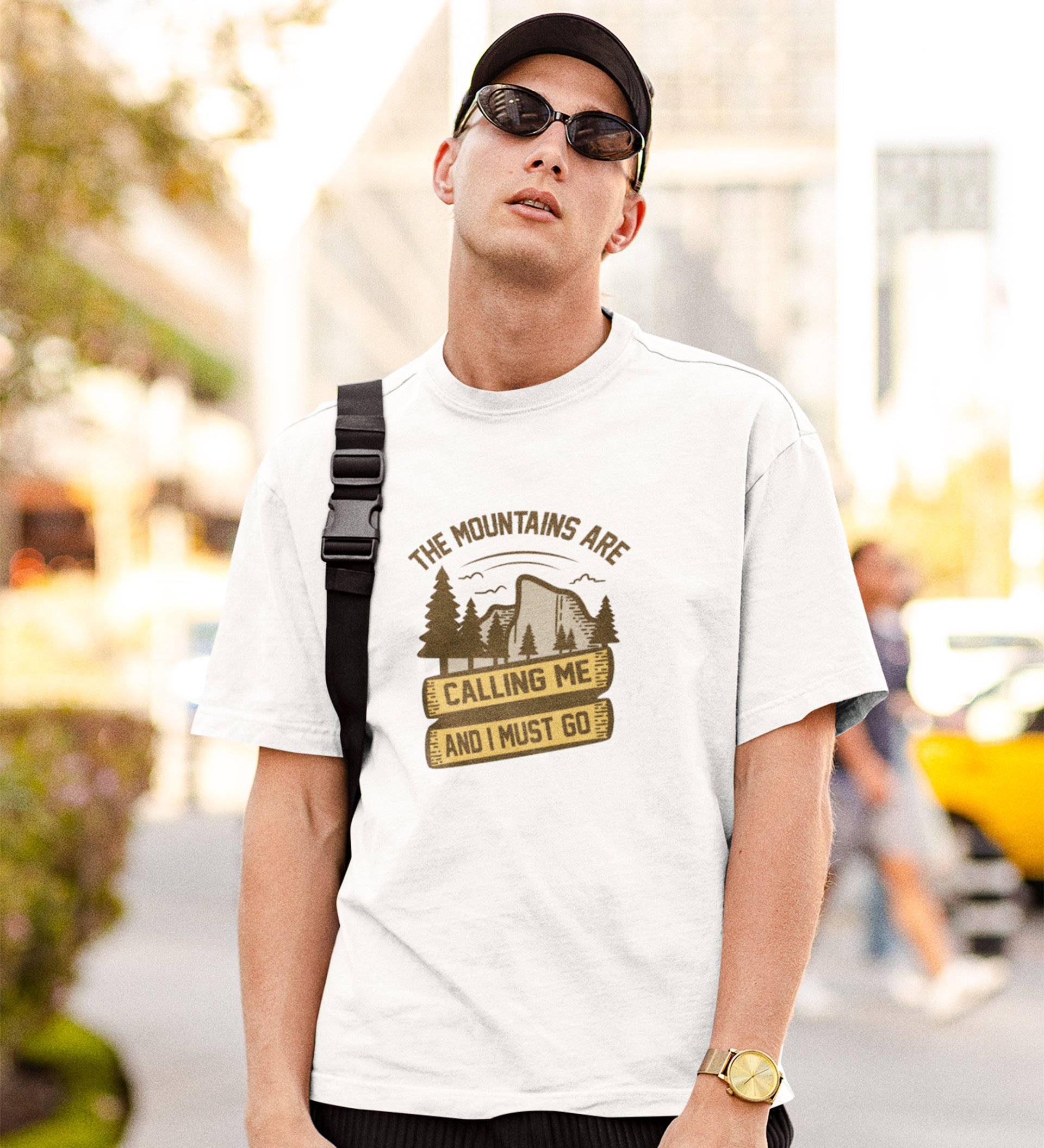 JD.TRENDS The Mountain's Call White Round Neck Cotton Half Sleeved Men's T-Shirt with Printed Graphics