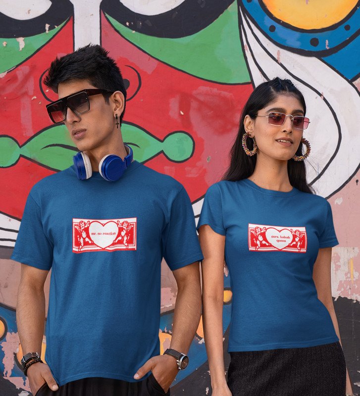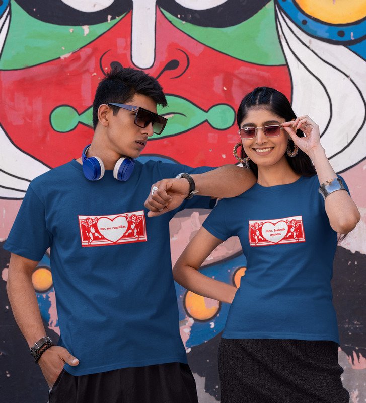 Mr No Reaction/ Mrs Kalesh Queen Printed Couple (blue) T-shirts