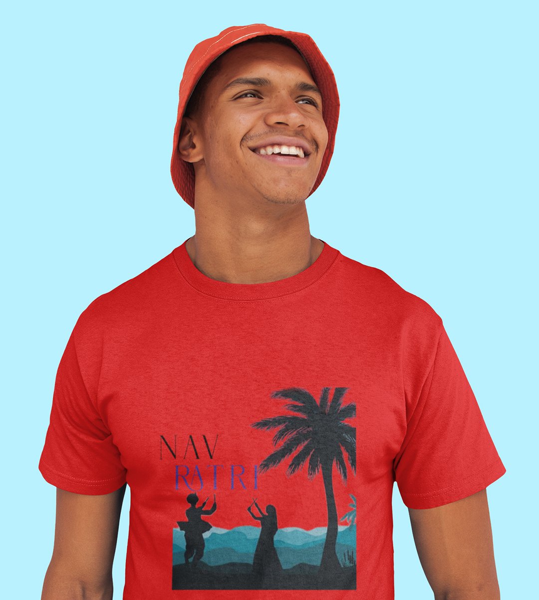 Navratri (Trees) printed unisex adults round neck cotton half-sleeve red tshirt specially for Navratri festival/ Durga puja