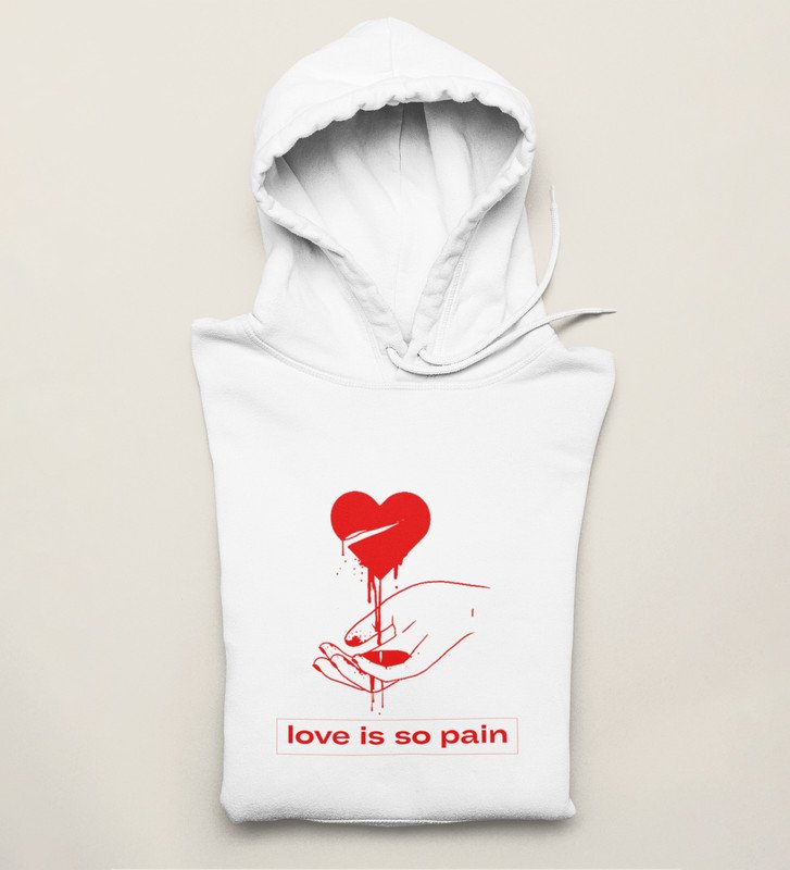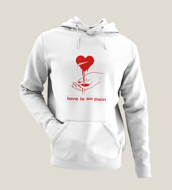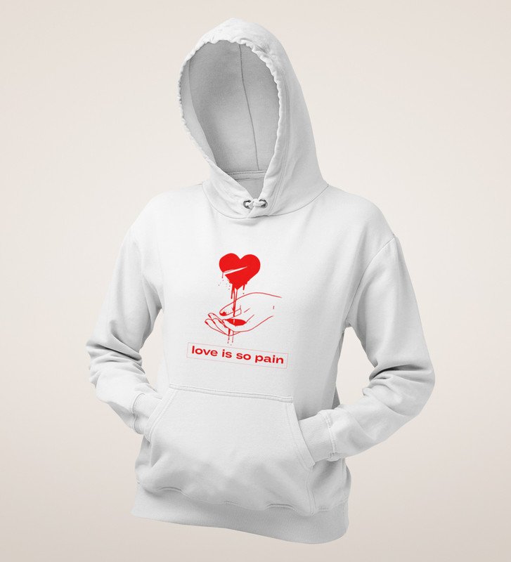 No Love No Pain: Sublimation Printed (white) Hoodies For Singles