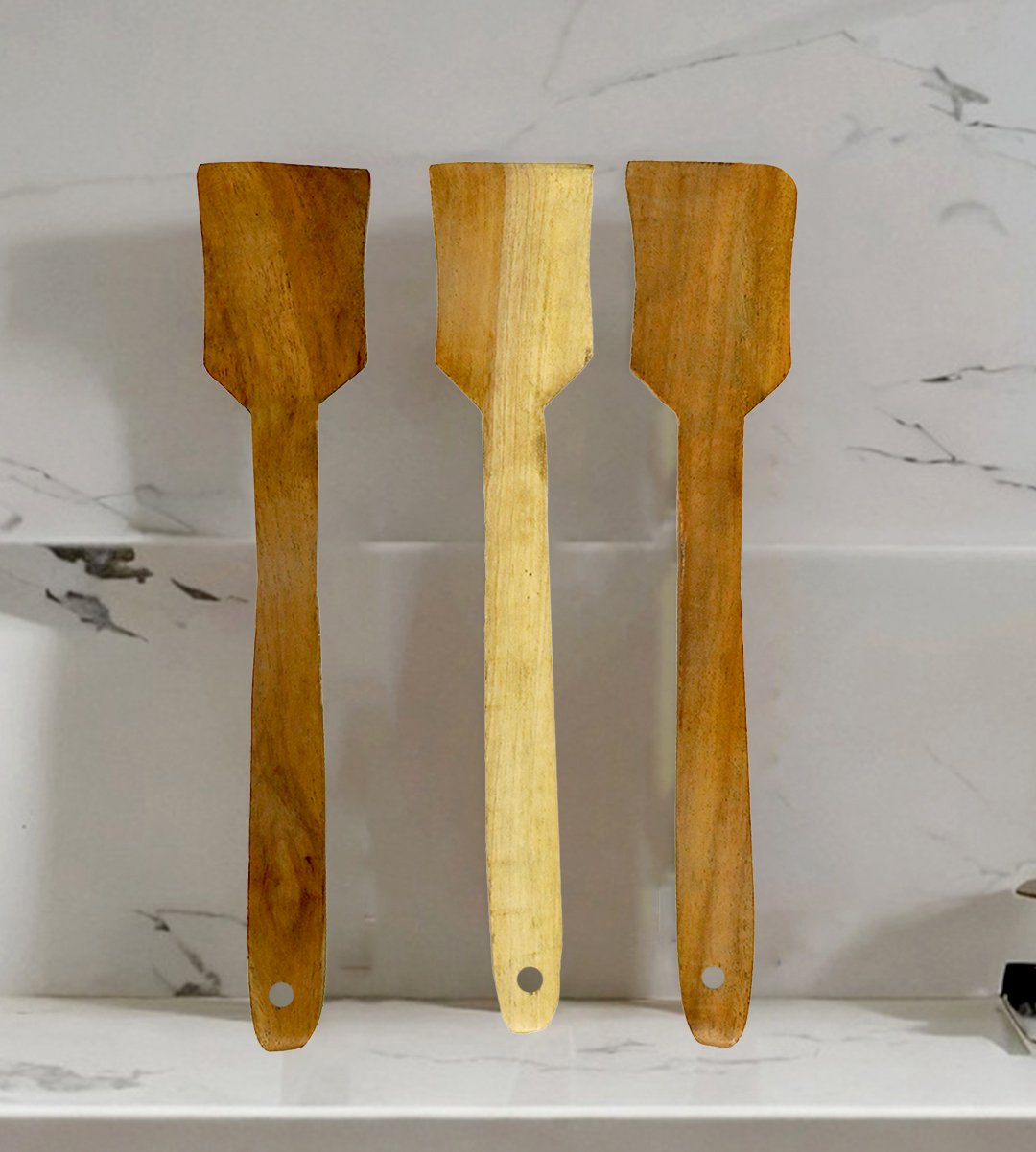 Wooden cooking ladles, spatula used to cook roti, chapati, dosa, semolina etc. This item improves the embellishment of your kitchen's look. This spatula is non-sticky and chemical free. Excellent prep tool for a chef or a new learner cook. Everyone has their favourite one to choose from. We have brought you many wooden spatulas designs for your kitchen. It brings spectacular view in the kitchen. Gifting material to mothers, relatives and dear ones. Grab it now.