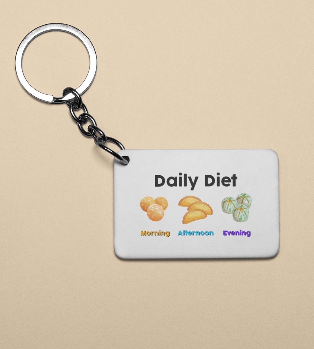 Let the world know about your love for sweets with this keychain showcasing the daily diet of a sweet lover during Diwali. |