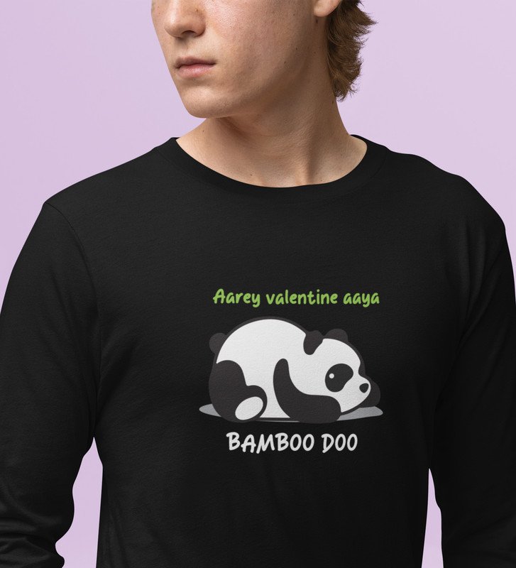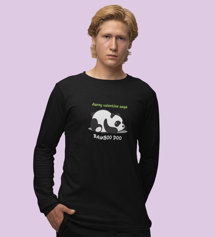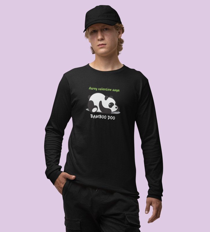 Panda Wants Bamboo: Attractive Printed (black) Full Sleeve T-Shirt For Singles