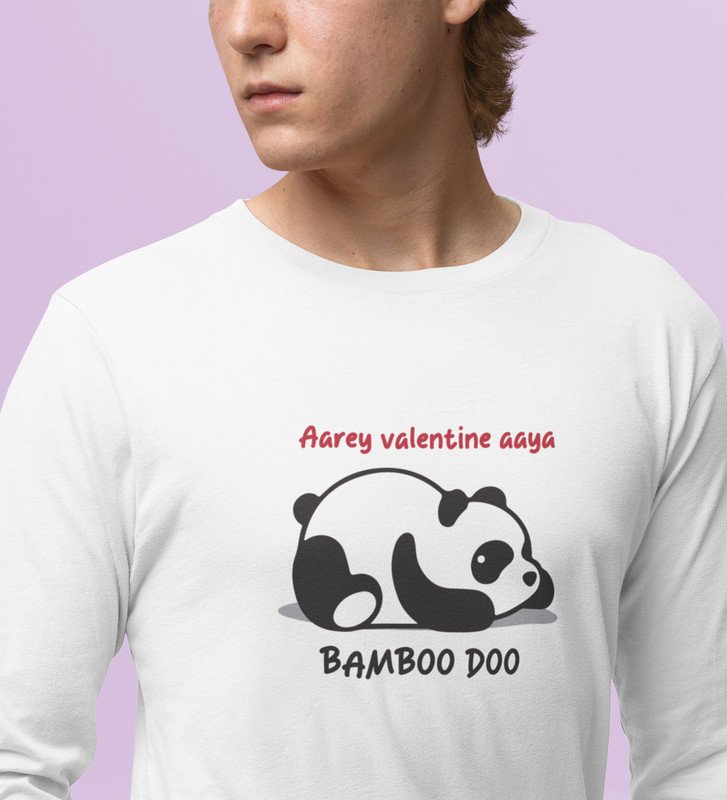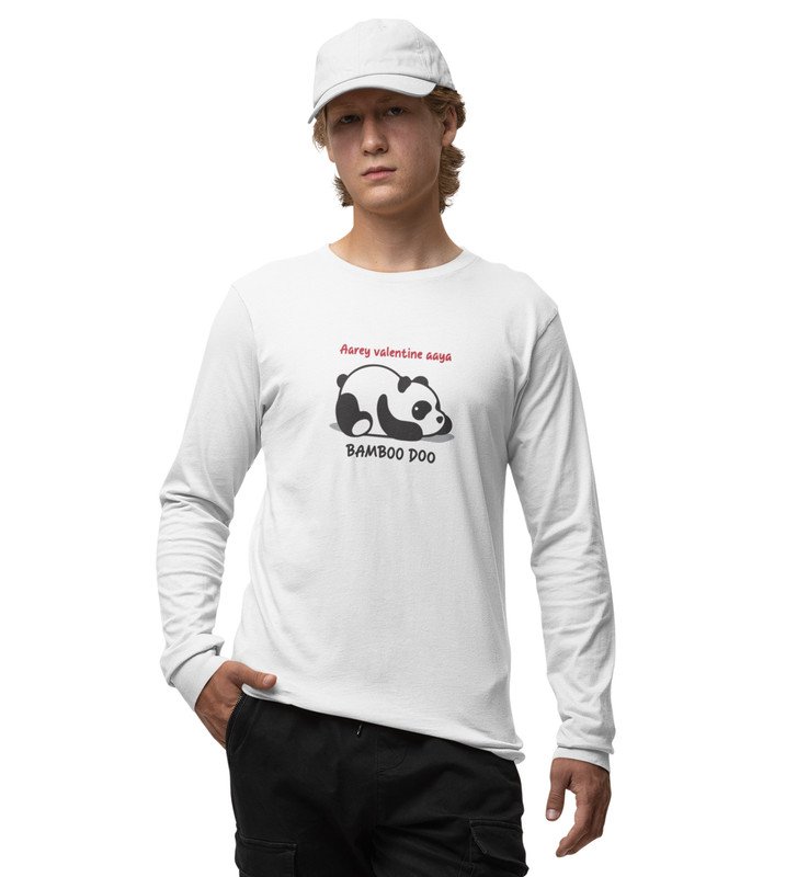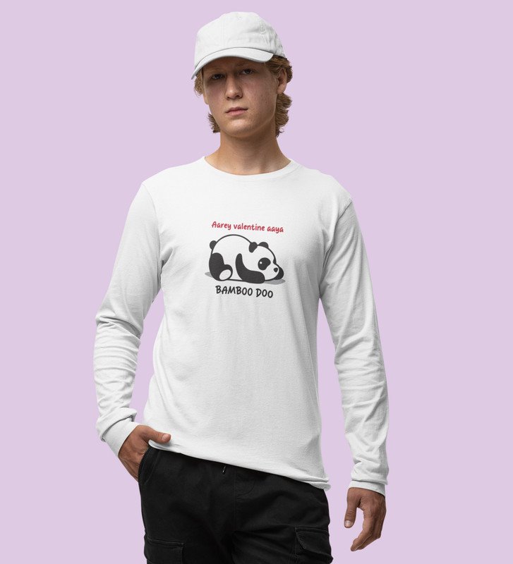 Panda Wants Bamboo: Attractive Printed (white) Full Sleeve T-Shirt For Singles