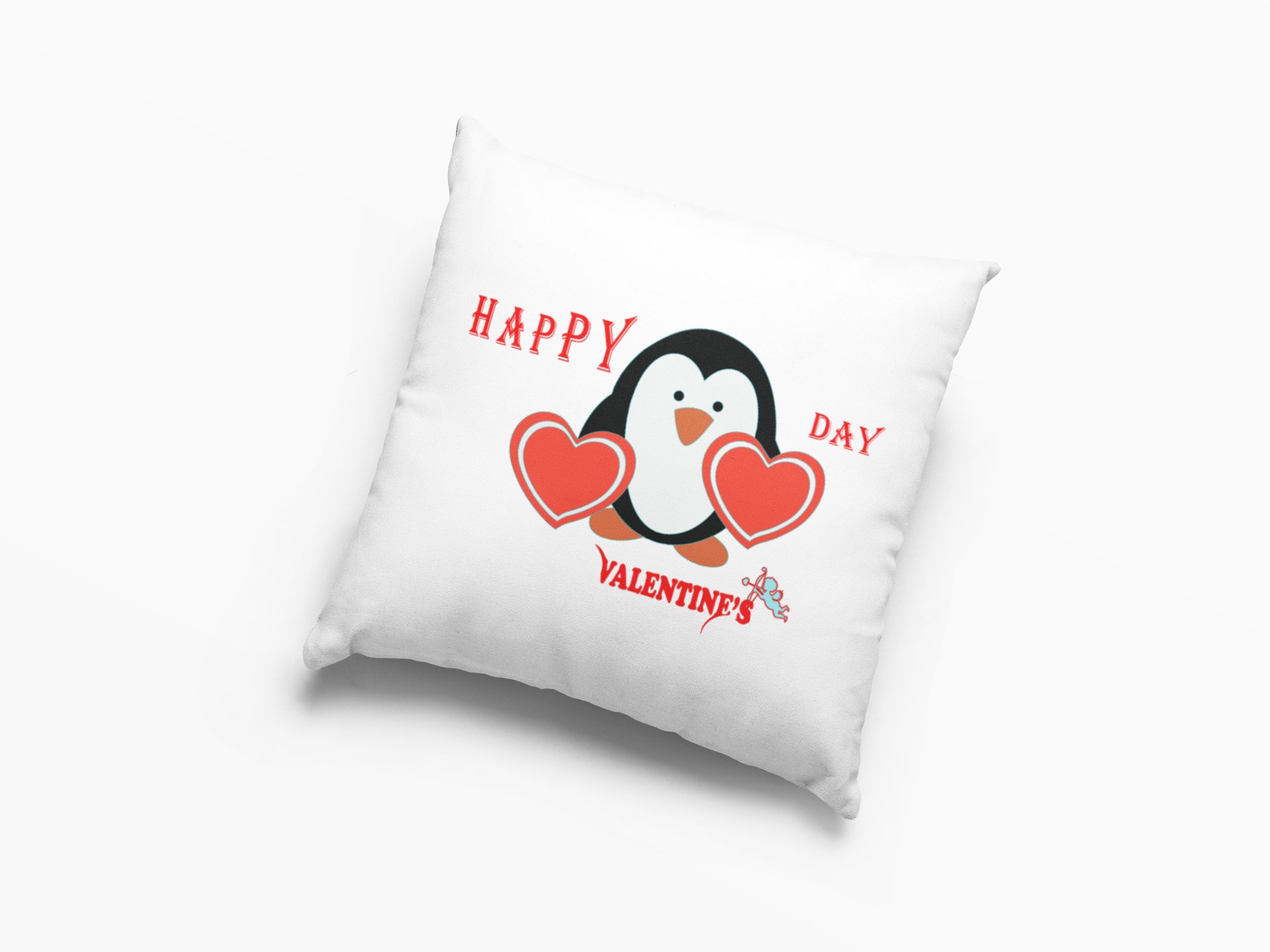 Penguin With Hearts -Printed Pillow Covers For (Pack Of Two)