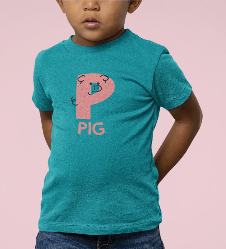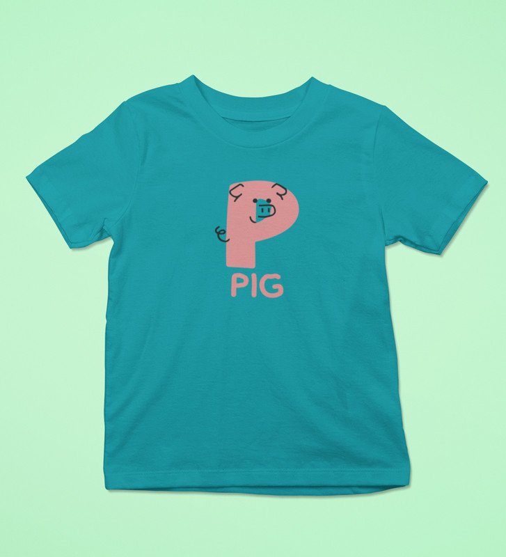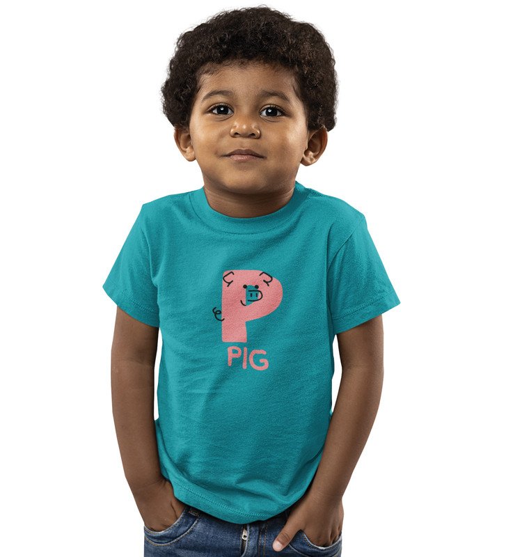 Pepper Pig, Boys Cotton Text Print Tshirt (Teal)