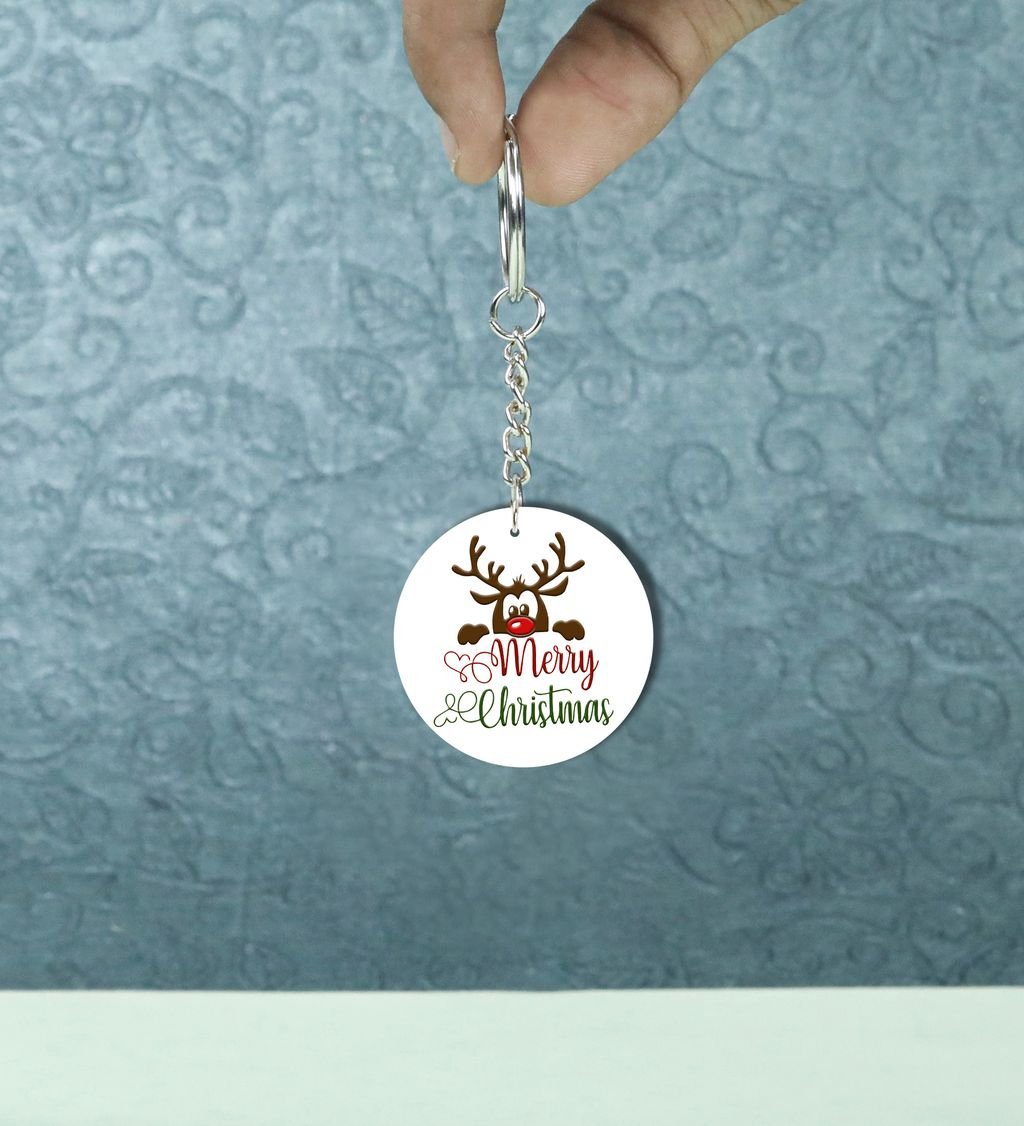 Celebrate the joy of the season with this beautifully designed Christmas Printed Round Keychain.