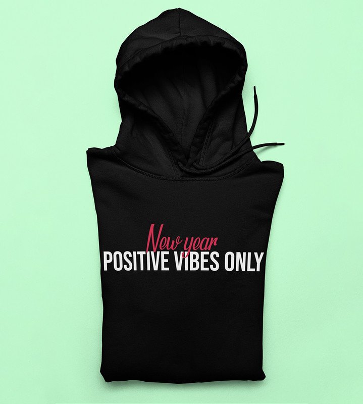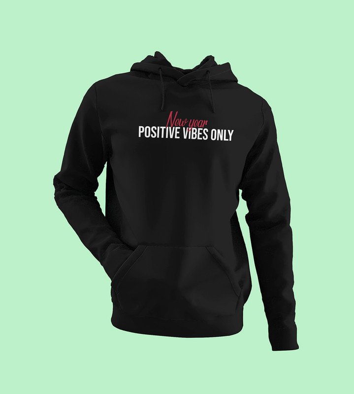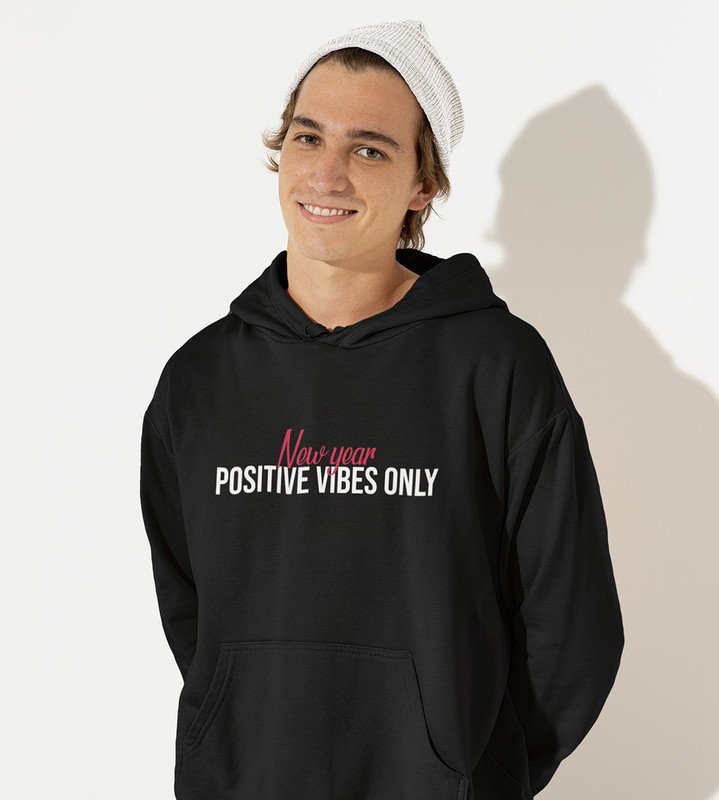 Positivity, Black New Year Printed Hoodies For Mens