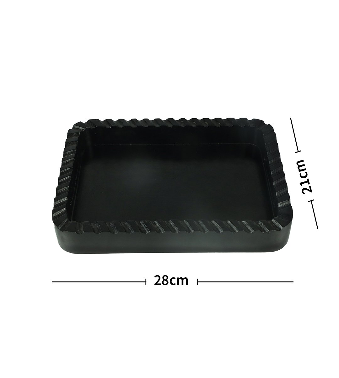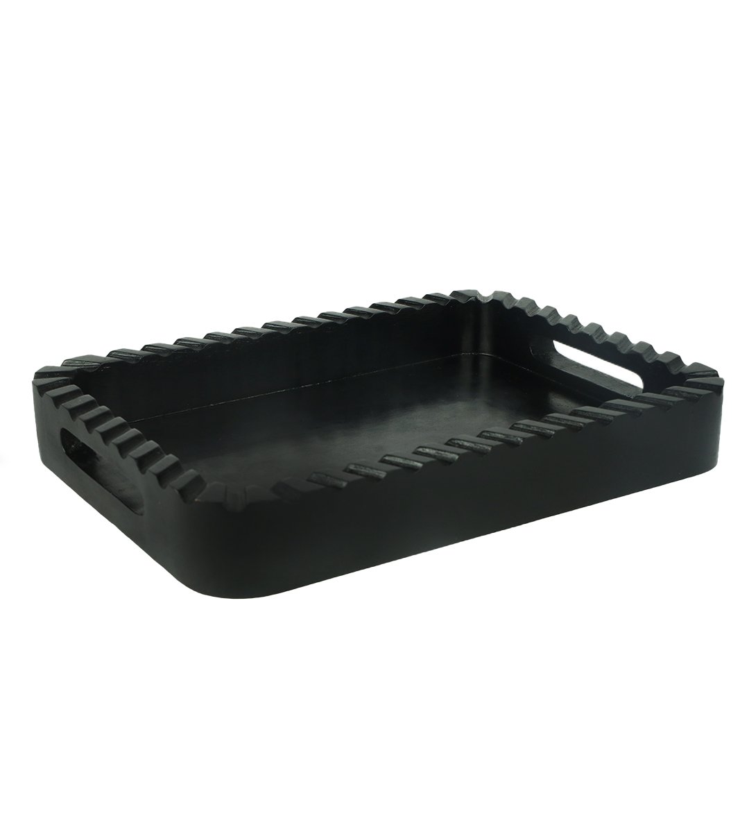 Black striped bars wooden rectangular serving tray/ food serving plate. These items are used to serve tea or coffee to the guests or can serve starter food also. Everyone has their favourite one to choose from. Plesant and gratifying design adds extra captivating look to the product. It looks good in transparent cupboards, or in kitchens, dining room or bedroom's side tables. We have brought you many wooden and stylish trays of different designs. Grab it now. Avoid using wet cloth to wipe this item for better use. Add an element of beauty to your home decor. Made up of wood with fine completion which is used in kitchens, restaurents, bars etc. It is a gifting material to your friends, family, relatives or dear ones. It could be a memorable gift for birthdays, marriage parties, house warming, anniversary etc, it can be a memorable return gift. What can be a better gift than an unique wooden item for your loved ones?