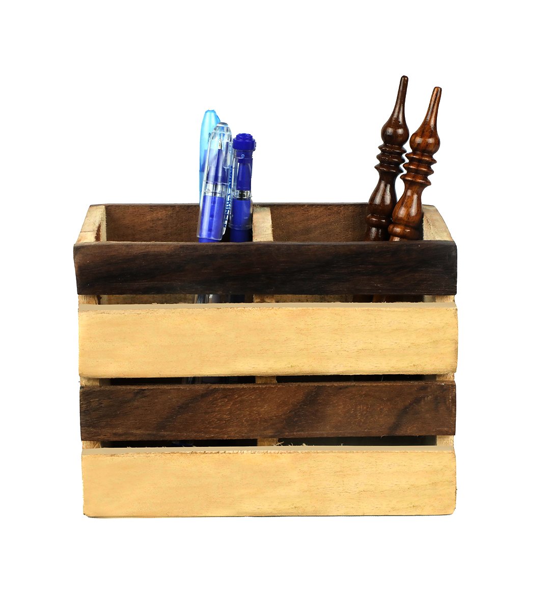 It is a pen container/ pencil holder / desk container / pen holder mostly kept in offices, homes, principal cabins, study tables etc. Everyone has their favourite one to choose from. It has stylish and elegant look which brings extra prime, elite and matchless value to the product. We have brought you many decorative pen containers of different designs and patterns. It is made up of wood with great finishing which is used in office desk, home table, study table. It is a best container/ pen holder to keep pen, pencil, rubber, paint brush, scissors, scales, notepads, mobile charger etc. Gifting material to your friends, relatives, parents, teachers or dear onesGrab it now. Add an element of beauty to your home decor. It can also be an ideal addition of your study room. It could be a memorable gift for birthdays, or to whose who are studing, it can be a memorable return gift. What can be a better gift item for your dear ones? Gift it to yourself, your family or your loved ones. It is perfect to keep your pens, paint brushes, scales, notepads, cellphone, chargers etc.