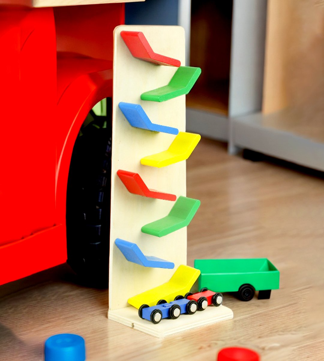 Toddlers wooden race track car ramp toy game / Slippery racing cars racetrack zip-zap game is made up only for childrens. It is a playing object which is made of wood specially for childrens to play. Moving cars in racing tracks gives excitement to the kids and pay attention towards it. Finest playing object / game to gift childrens. It specially helps babies to refresh their mind. The small cars excites kids towards the game. Everyone has their favourite one to choose from. We have brought you many wooden race track toy game. It can also be an ideal addition of your children's living room. It could be a memorable gift for kids' birthdays, it can be a memorable return gift. What can be a better gift item for your children? Grab it now.