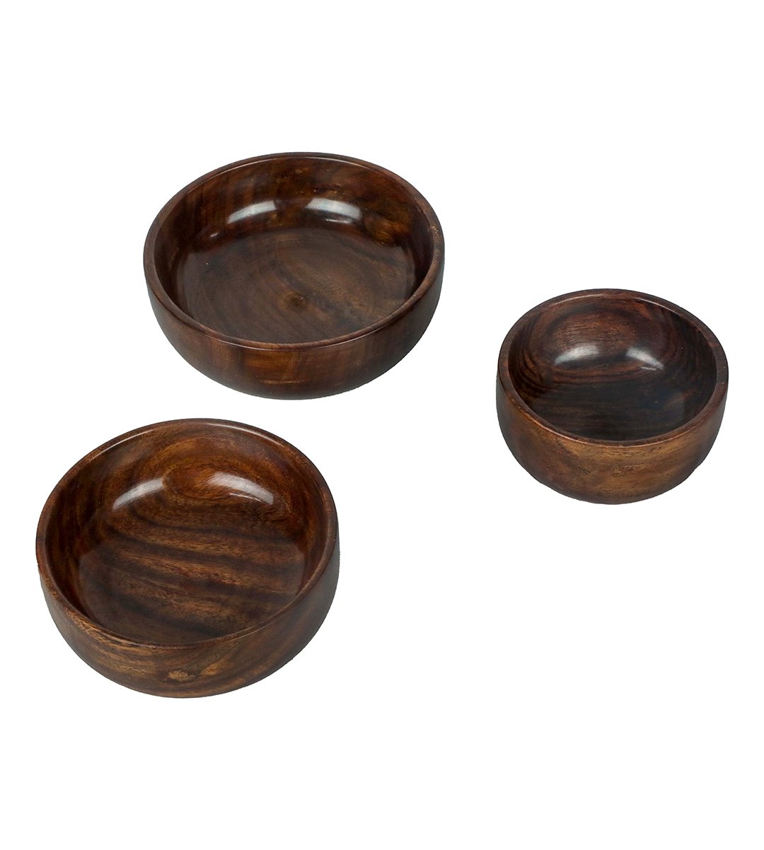 Wooden classic bowl set (set of 3 bowls) are used in dining tables and kitchens. It looks elegant and it is used to serve soup, noodles or any other food. It has an unique design which is used in kitchen. Everyone has their favourite one to choose from. It looks good in transparent cupboards or also you can keep it in dining table. We have brought you many stylish wooden round bowls of different designs and sizes. Add an element of beauty to your dining table. It could be a memorable gift for birthdays, marriage parties, house warming, anniversary, shop inaugration etc, it can be a memorable return gift. What can be a better gift than an unique wooden bowls for your dear ones? Gift it to yourself, spouse, mother, relative or your loved ones. Grab it now.