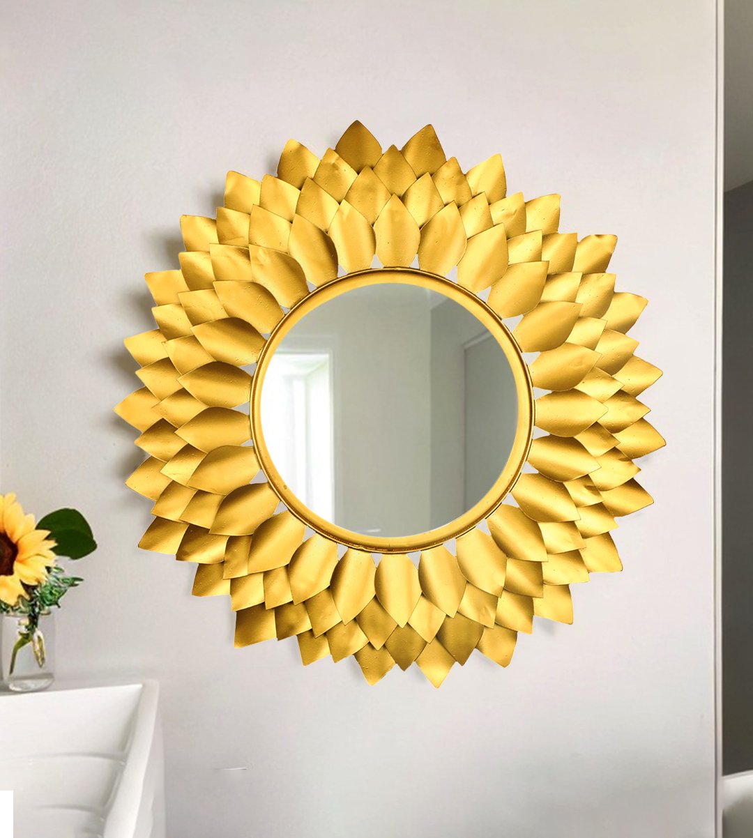 The sun burst mirror range has beautiful flower petals type design surrounding it. They are little bit heavy weight. Add an element of beauty to your home decor. It can also be an ideal addition to your living room. It has anti-dust layer and anti-spatter glass. Best to decorate entrance room, bathroom, bedroom, dining room, balcony etc. It could be a memorable gift to your birthdays, wedding, house warming, anniversary or festive occasions, it can be a memorable return gift. What can be a better gift than a handcrafted antique wall mirror for your loved ones? It is best to decorate entrance room, bathroom, bedroom, dining room, balcony etc. Gifting item to your friends, family or your dear ones. Add elegance in your home decor with it. Gift it to yourself or Friend, Spouse, Parents, Grand Parents. All Occasion Gift.